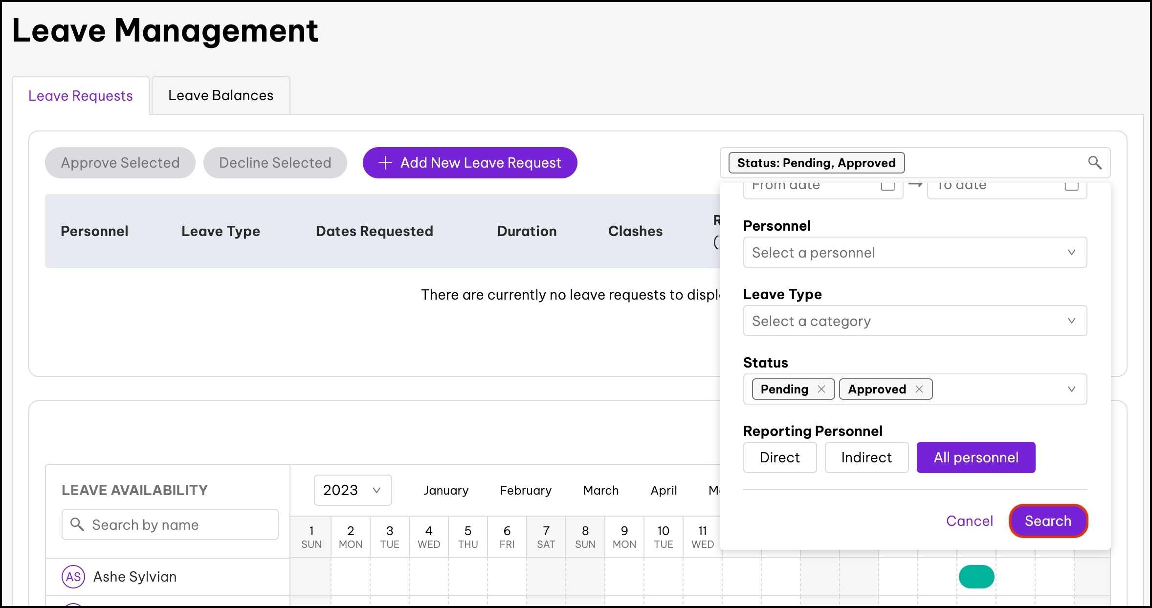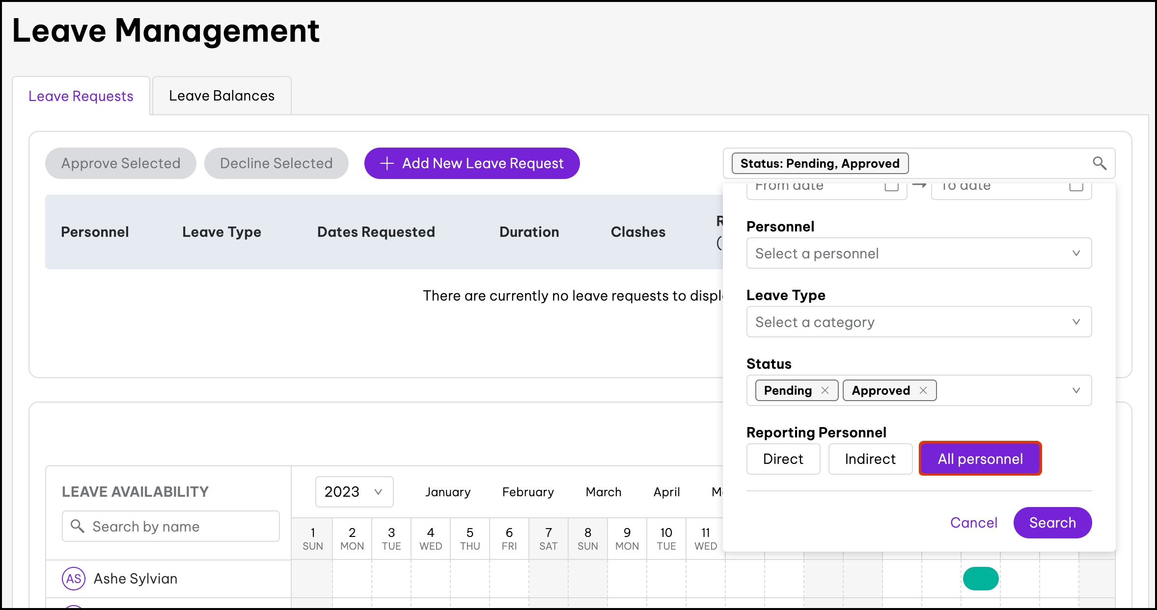 - You will now see any other employee leave request that clashes for a particular date period.