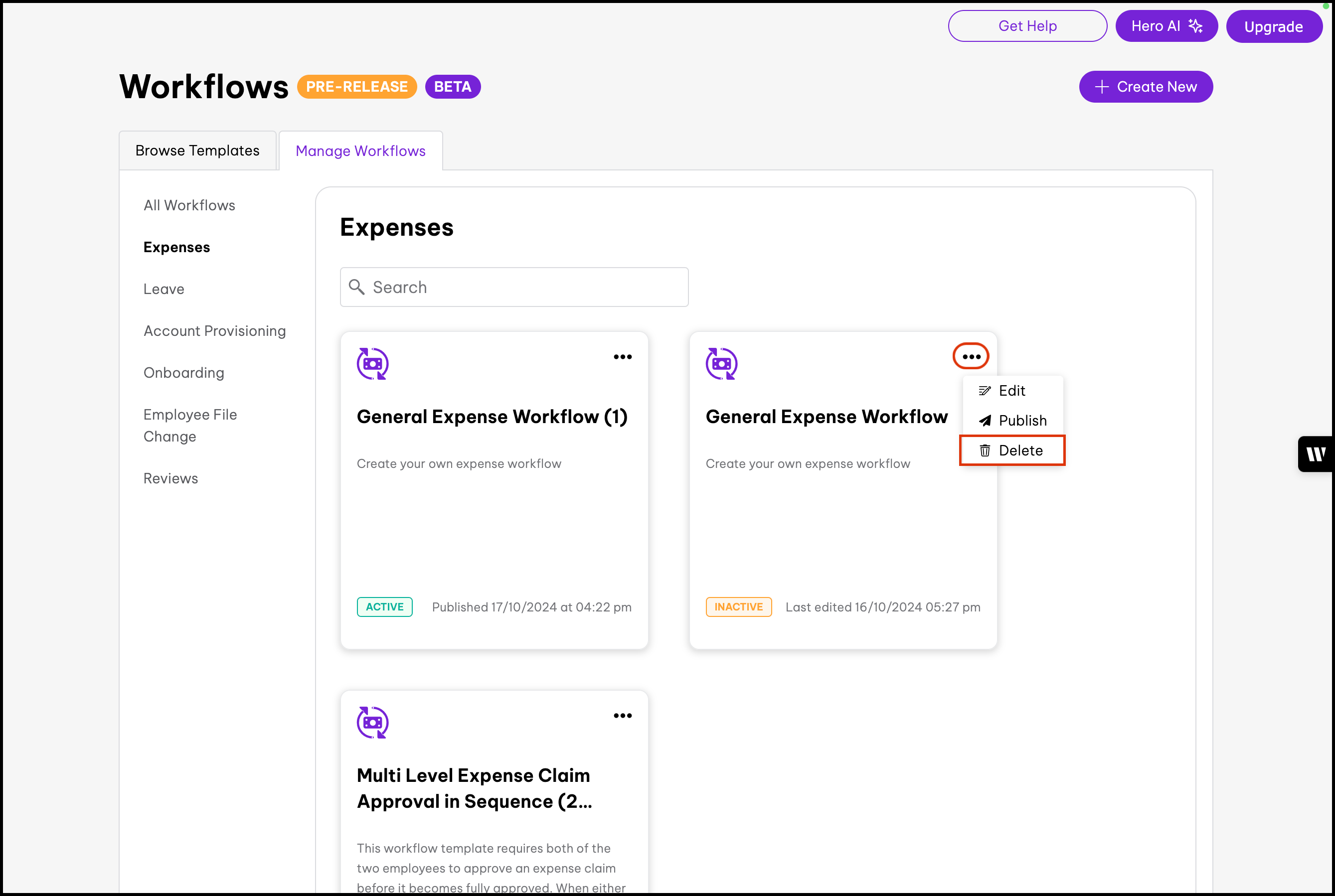- Click the ellipsis on the General Expense Workflow.