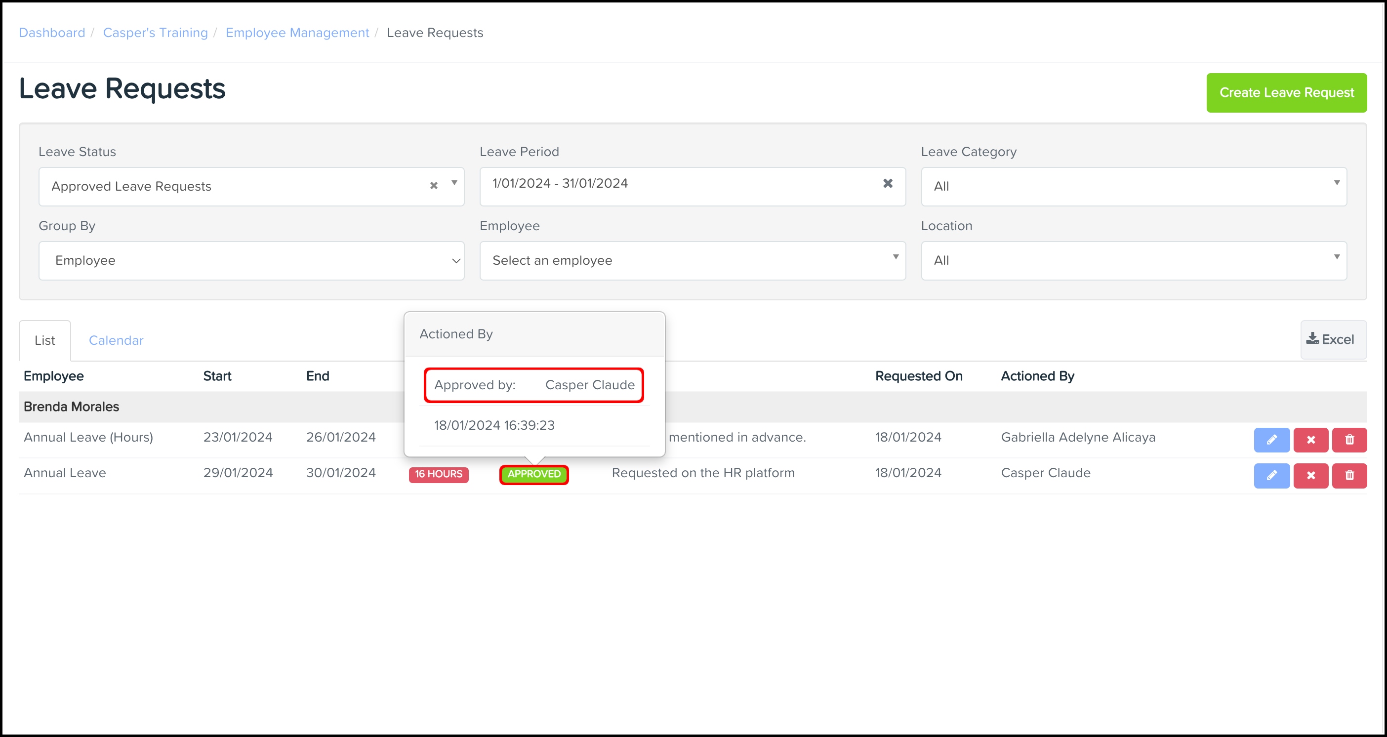 Casper Claude is the one who completed the initial integration between this organisation's HR classic and Payroll classic platforms. He will appear as the approver, even though he was not the one who approved the leave request.
