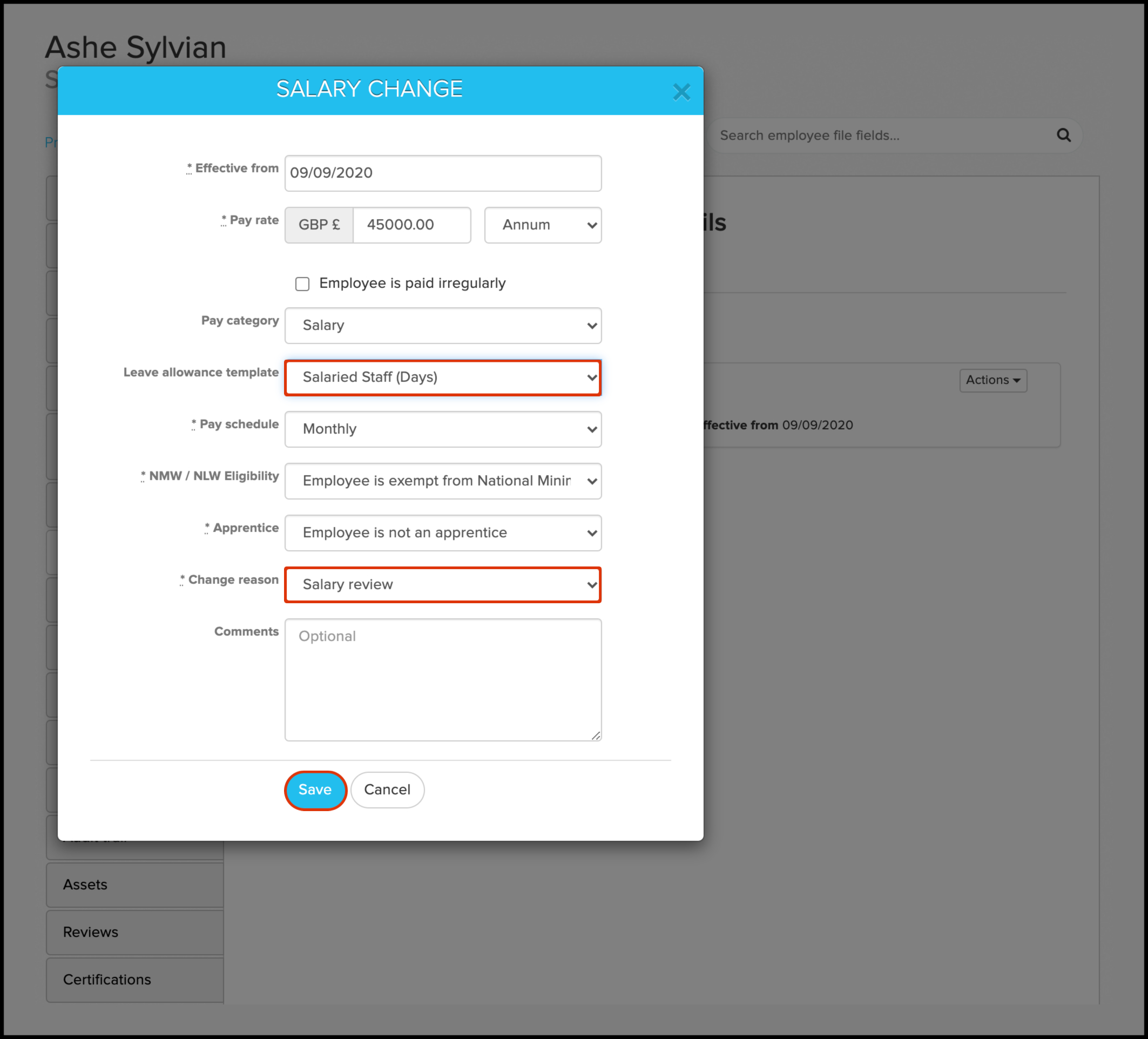 - Select the employee that needs a leave allowance template updated.