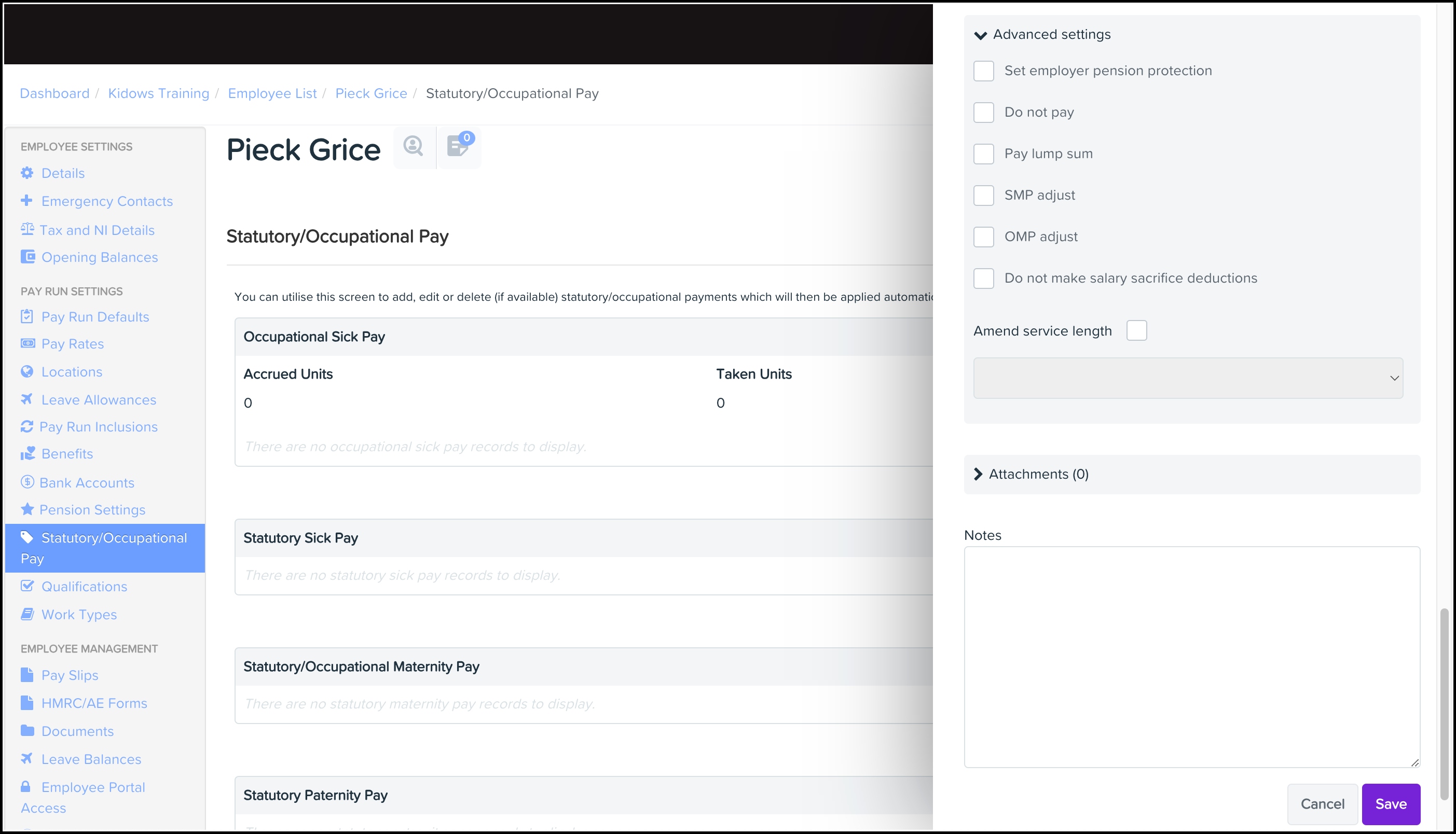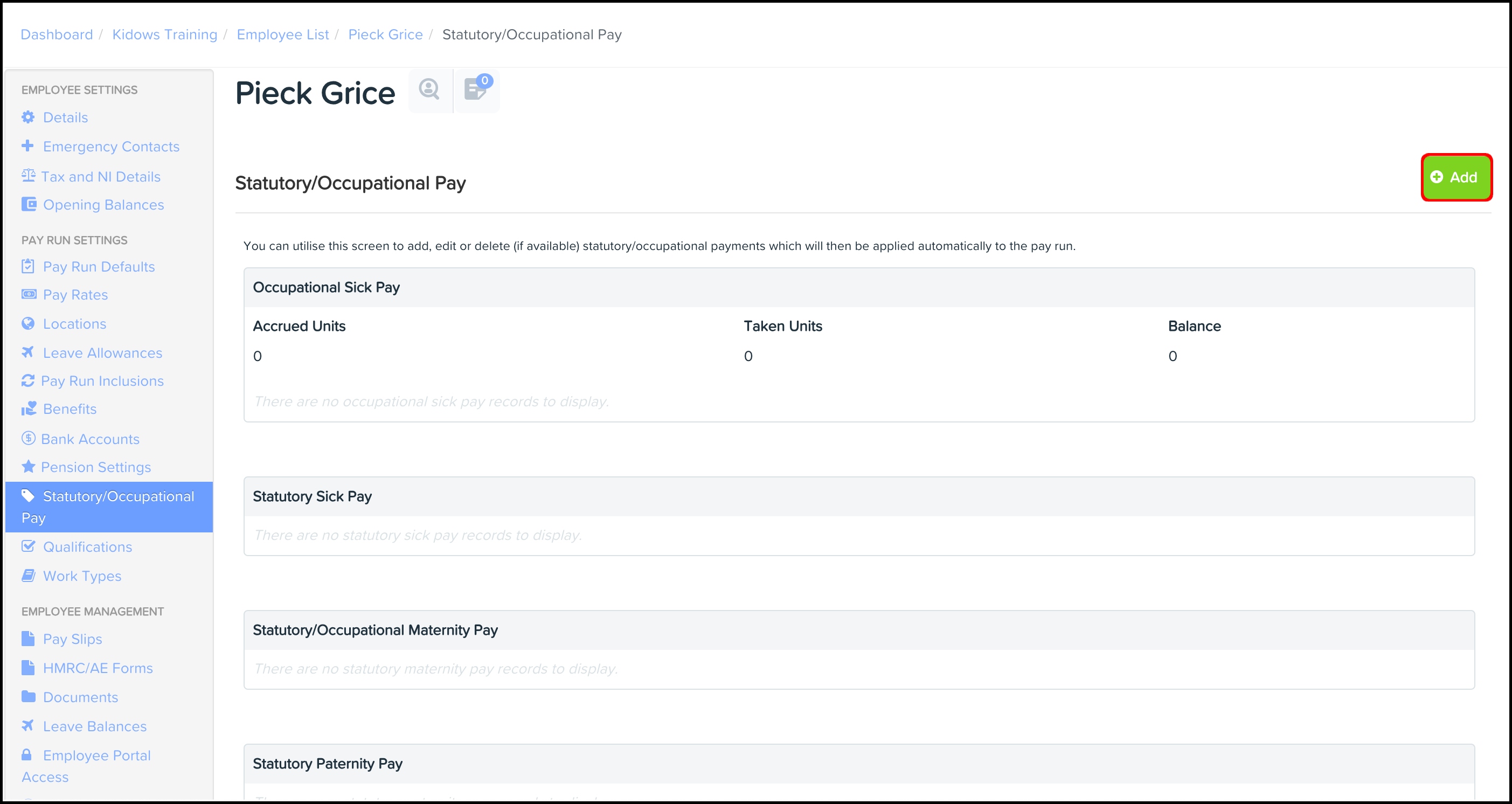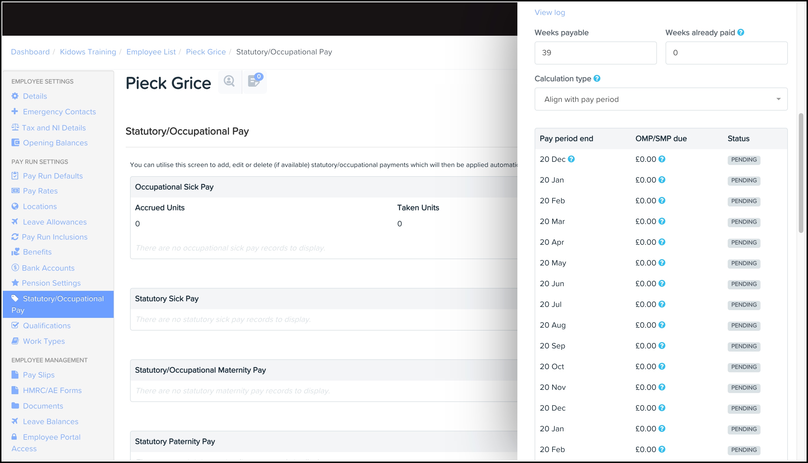 - Under Pay Run Settings, click Statutory/Occupational Pay.