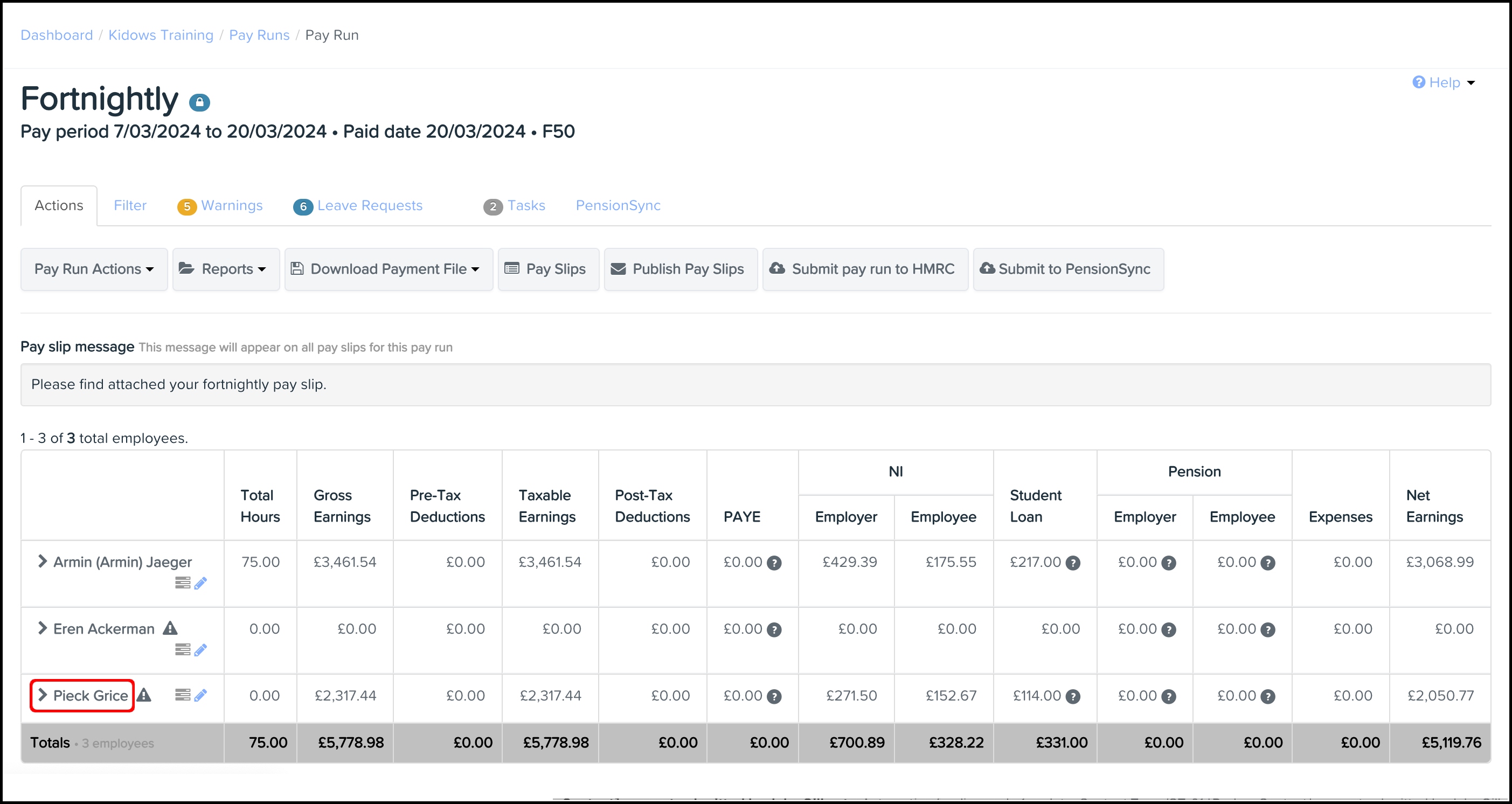 - Click the pay run you need.