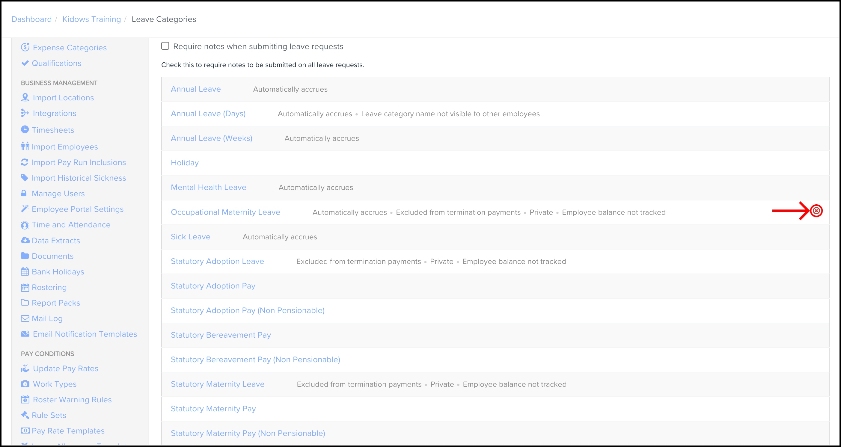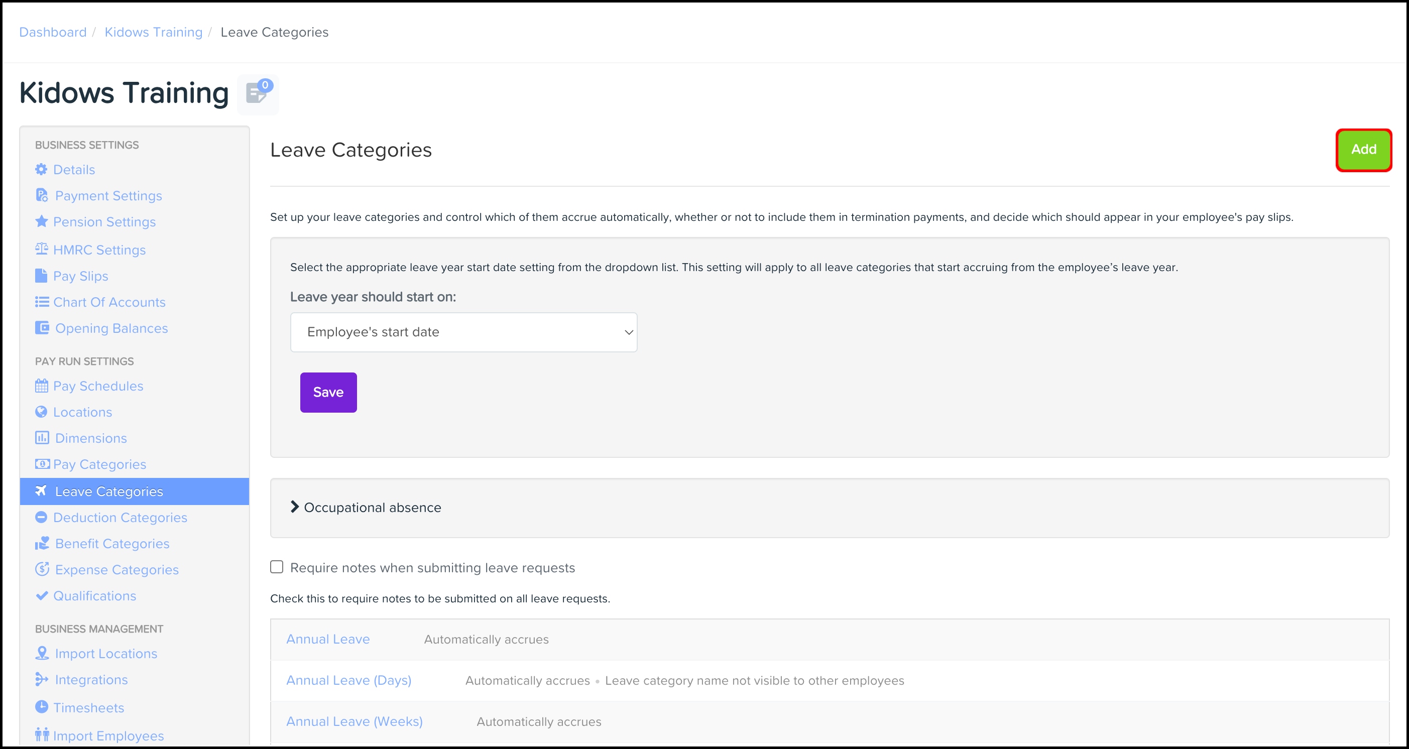 - Under Pay Run Settings, click Leave Categories.