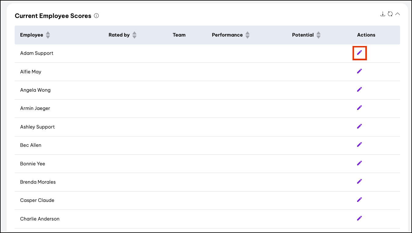 - You can now use the same way of rating performance and potential for other employees in the list.