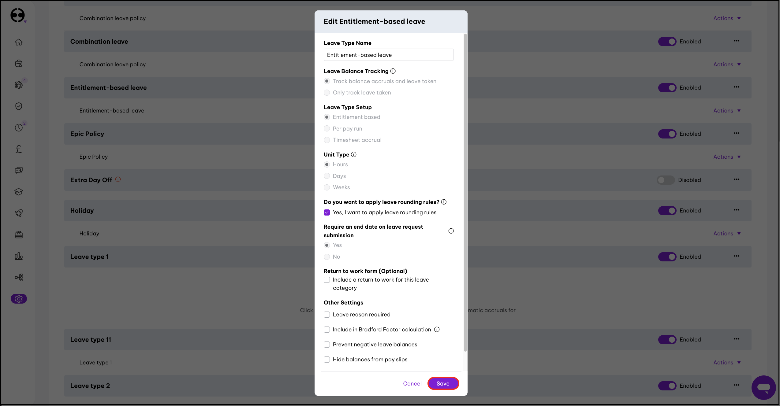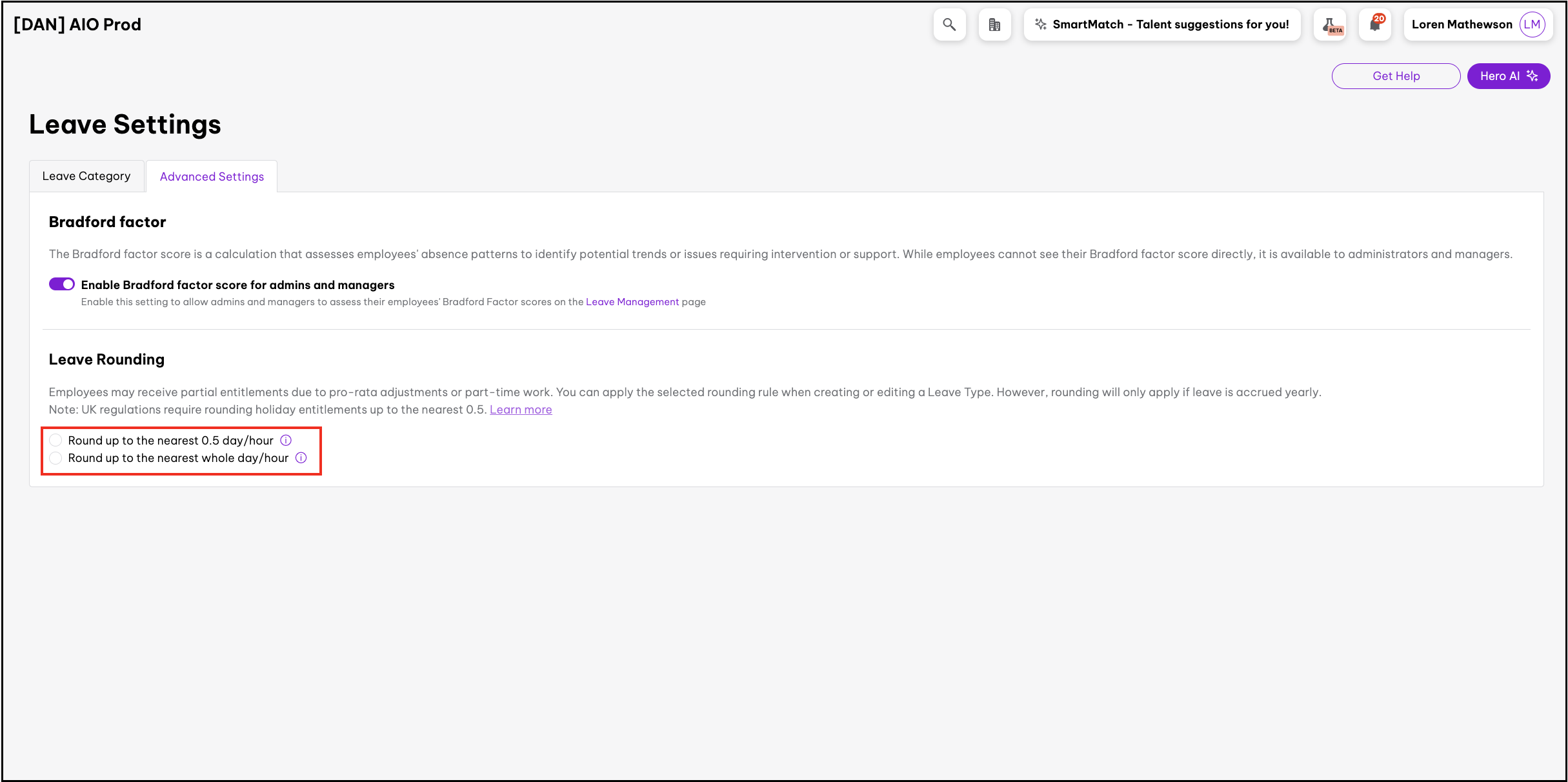 - Here you will see where Employment Hero has rounded up the leave to a full or half-day.