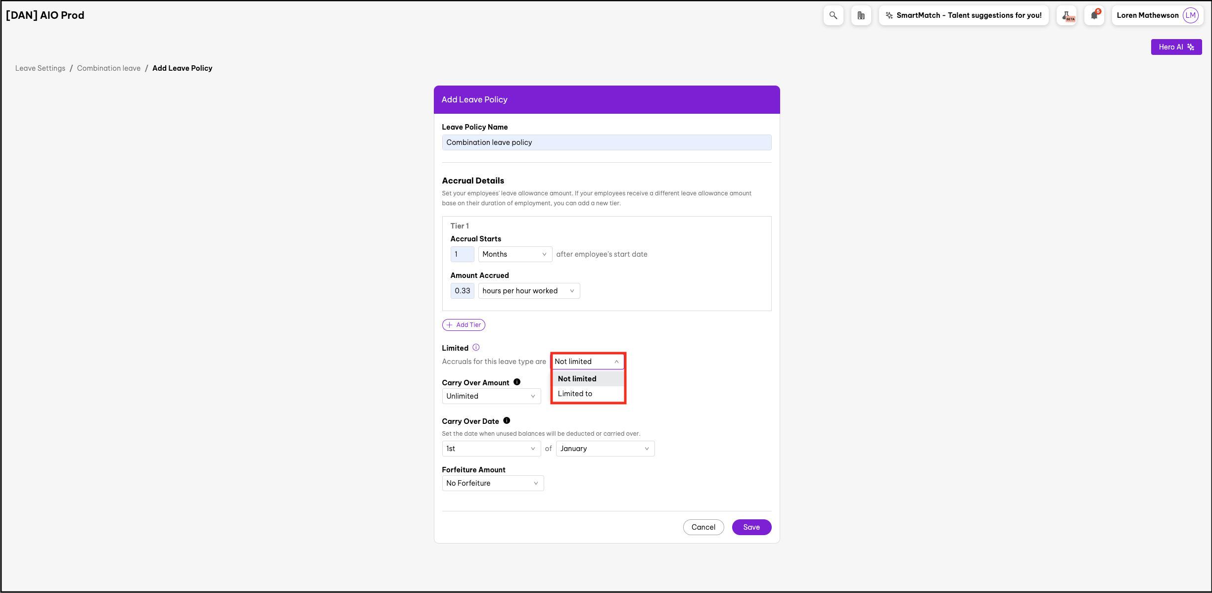 Limited refers to the maximum amount of leave that an employee will be able to accrue.