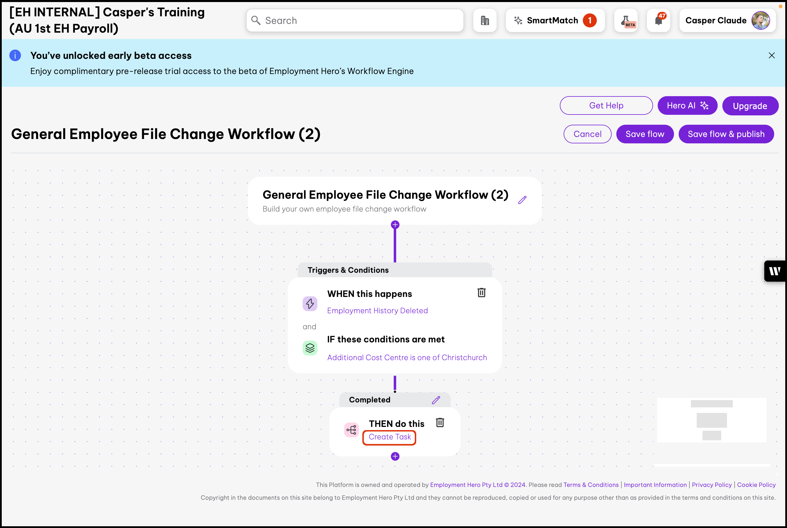 The Employee File Change Workflows feature lets you create a set of steps that Employment Hero will take regarding expense claims. Each step follows the When-If-Then sequence, which is like this: