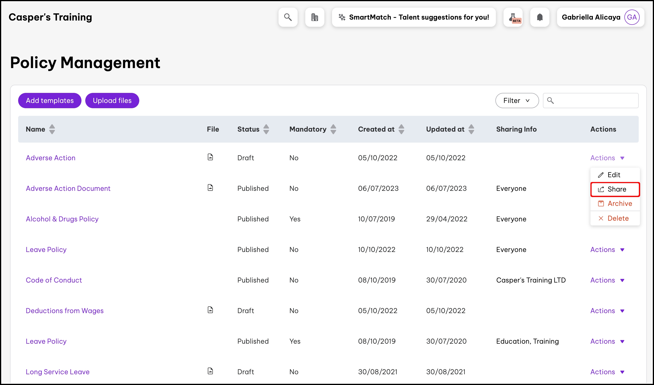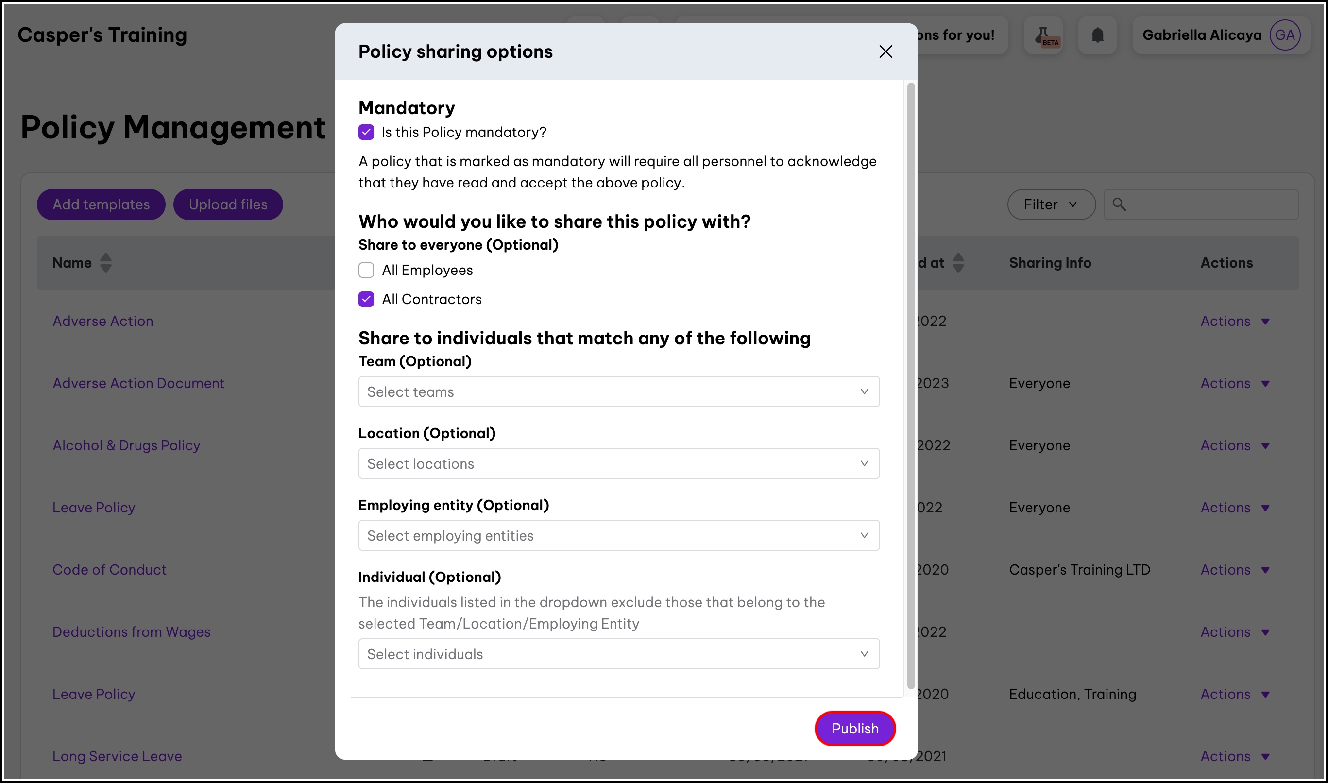 This article explains how to send your organisation's policies to your employees. You can choose to share policies with different employees based on things like their team, location or employing entity. You can also share policies with individuals if required. This article also explains how to filter your policies within the policy management page.