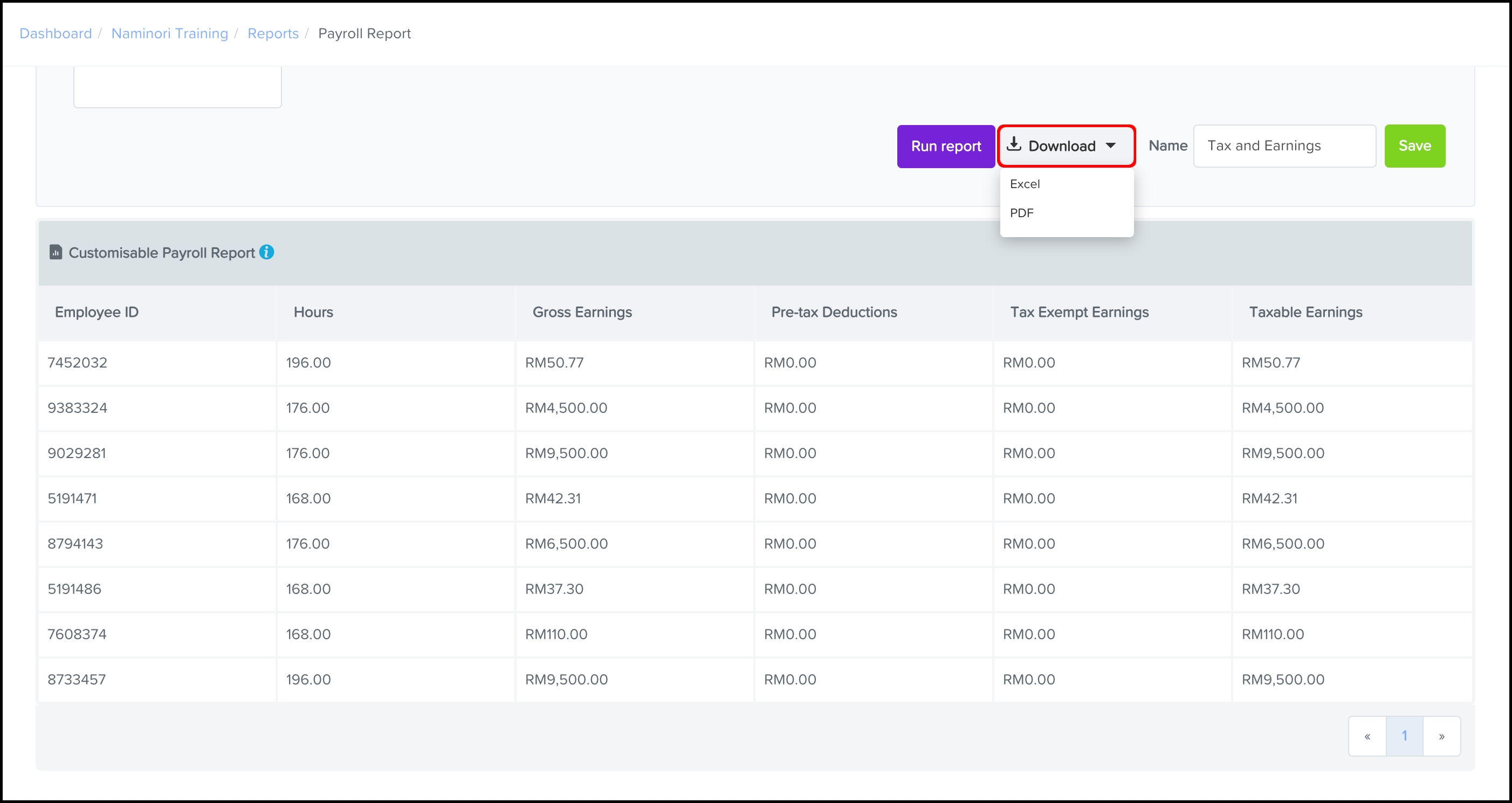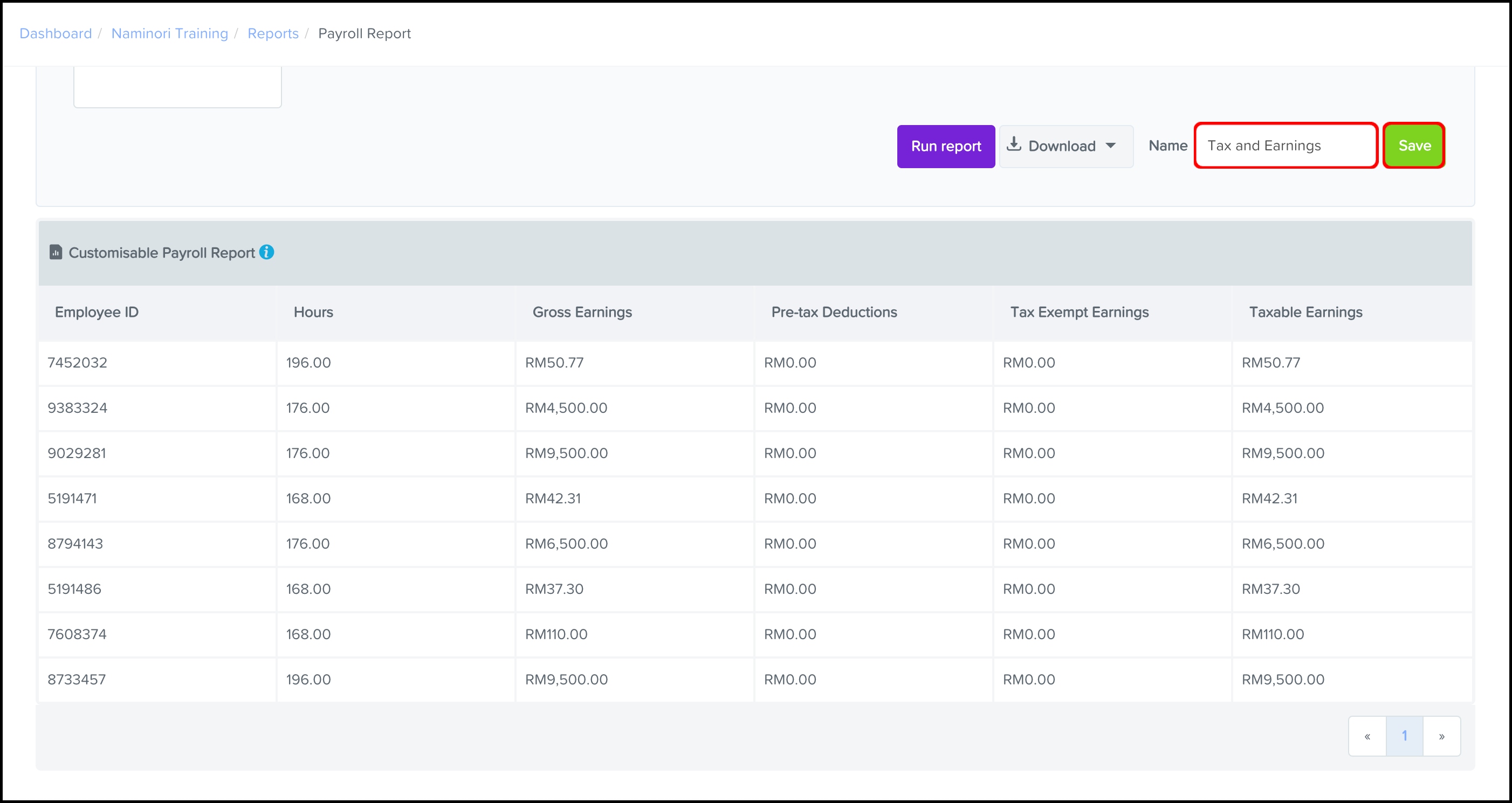 - The report will now show within the list of reports under the Payroll heading.