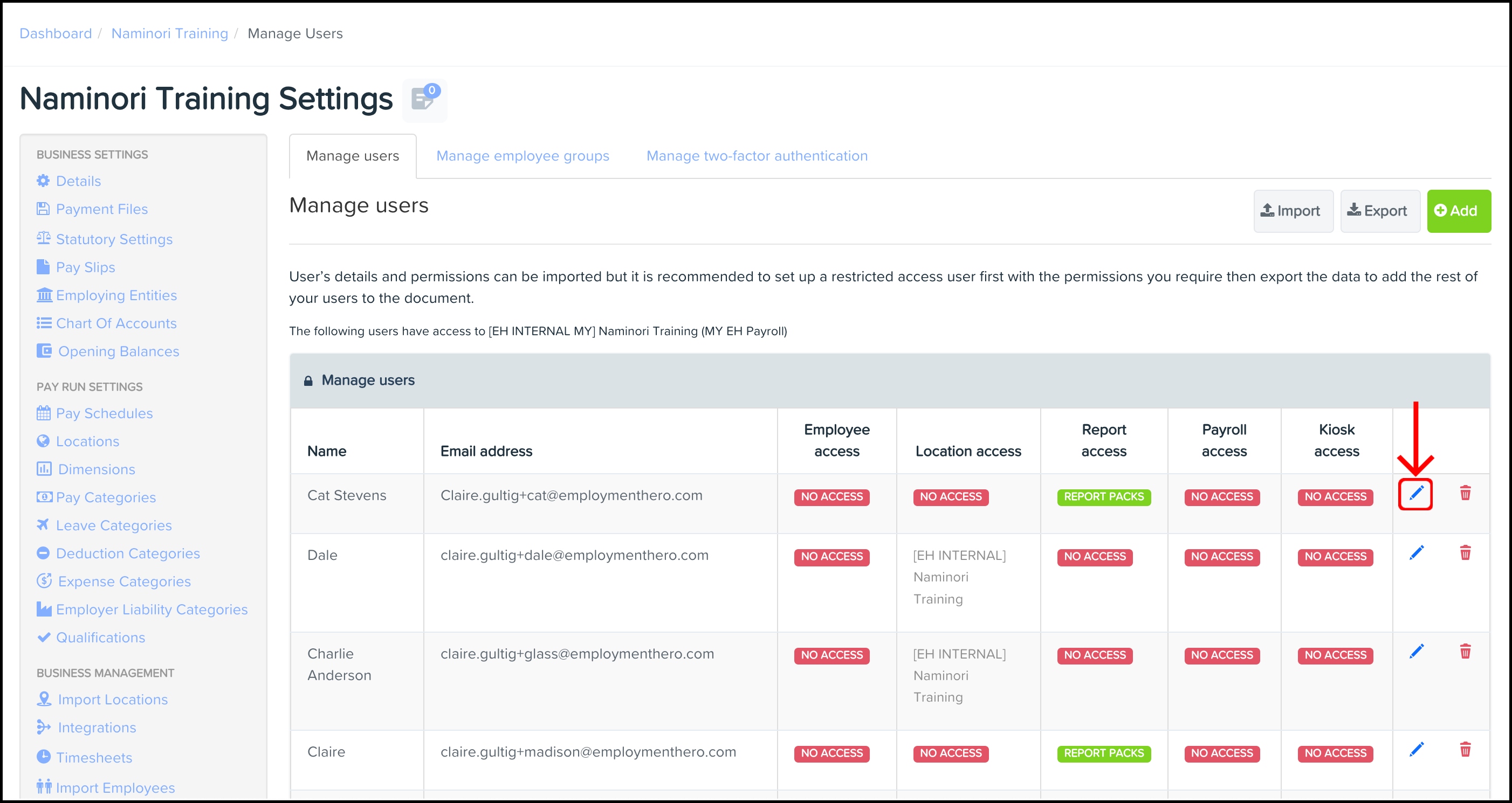 - Under Business Management, click Manage Users.