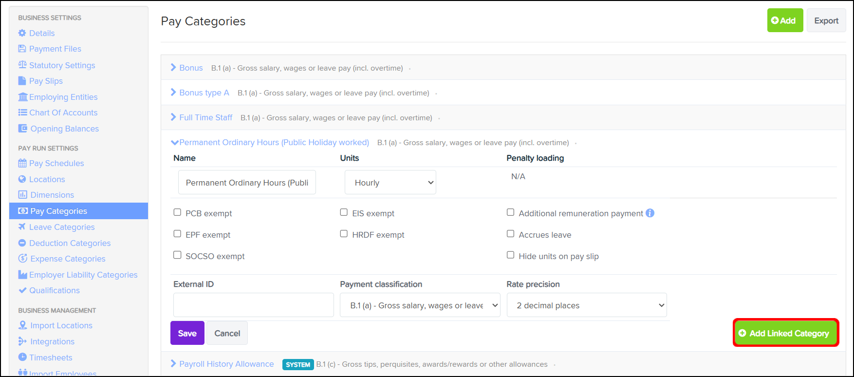 - Once the linked pay category is added, you will need to complete the relevant fields.