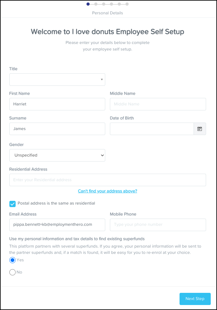 - On the Personal Details page some details are pre-populated according to what your employer has entered for you. You can now fill in the remaining fields: