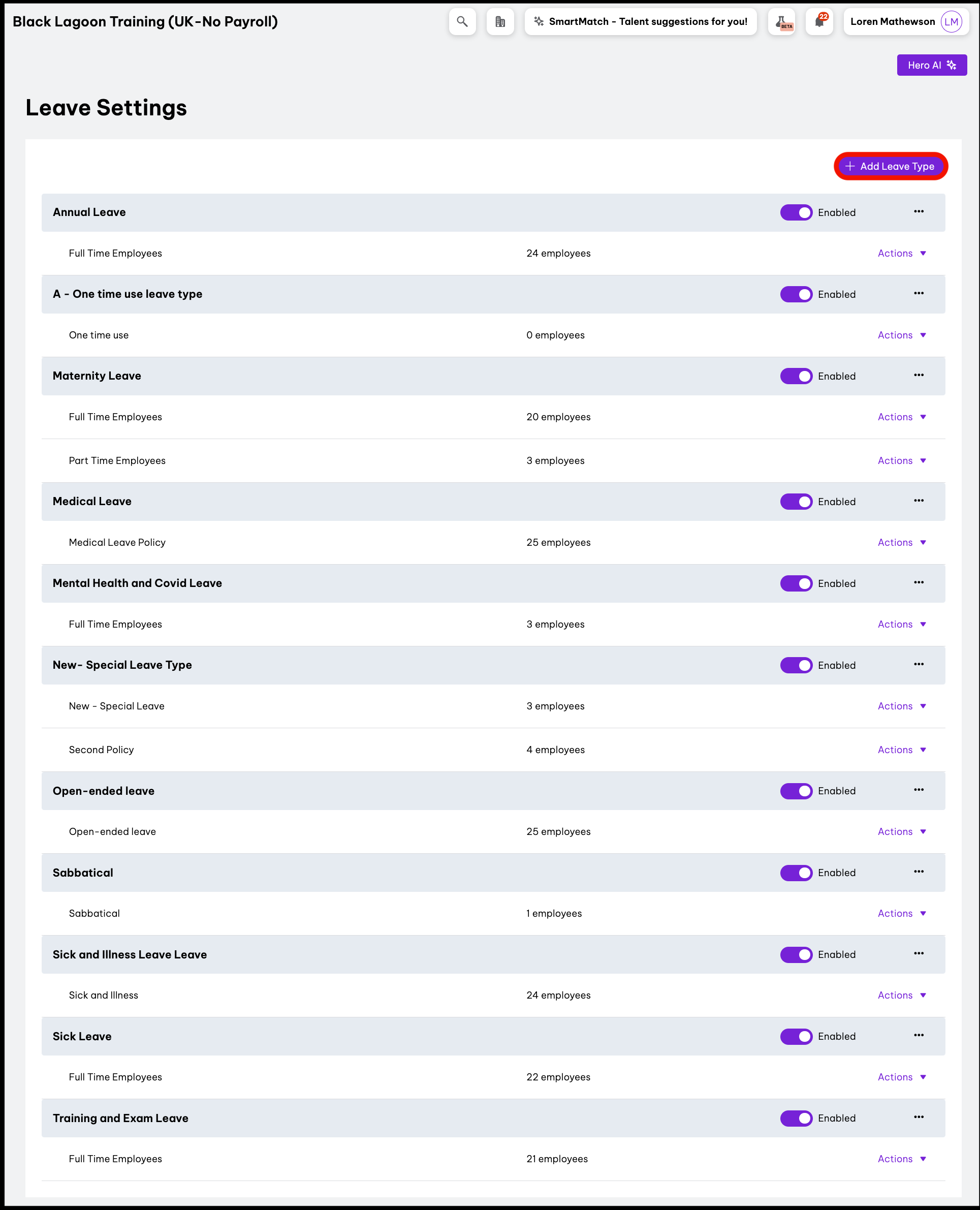 - Click the + Add Leave Type button.