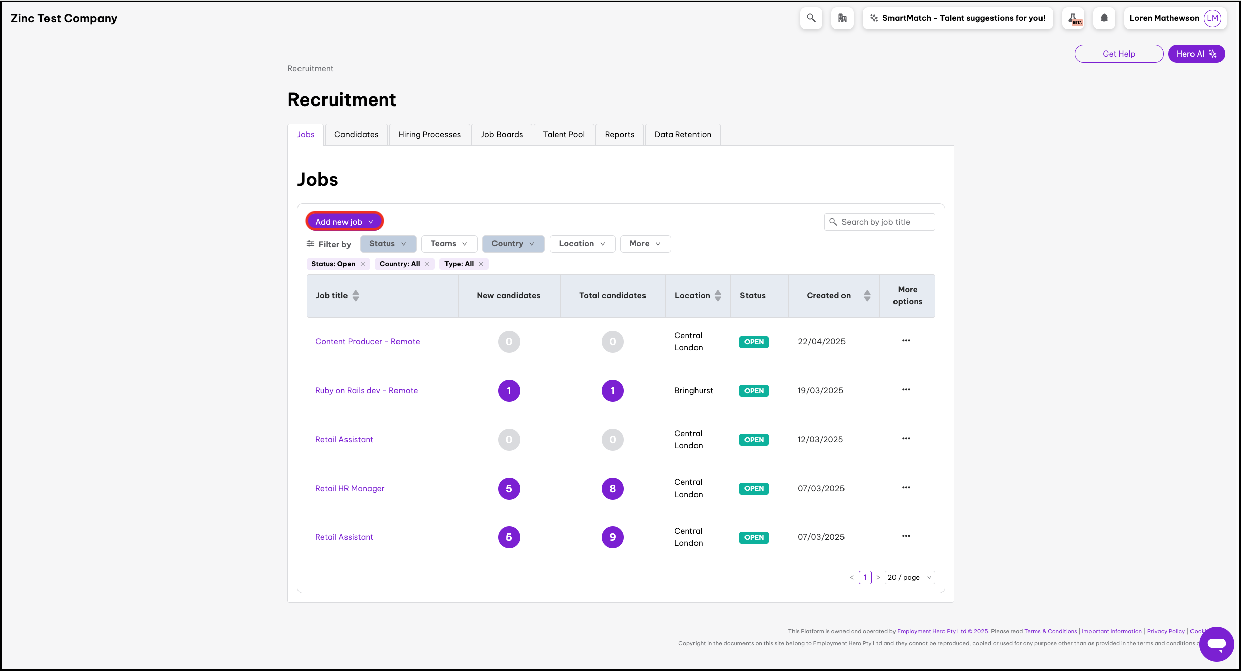 - Click on the Add new job button.