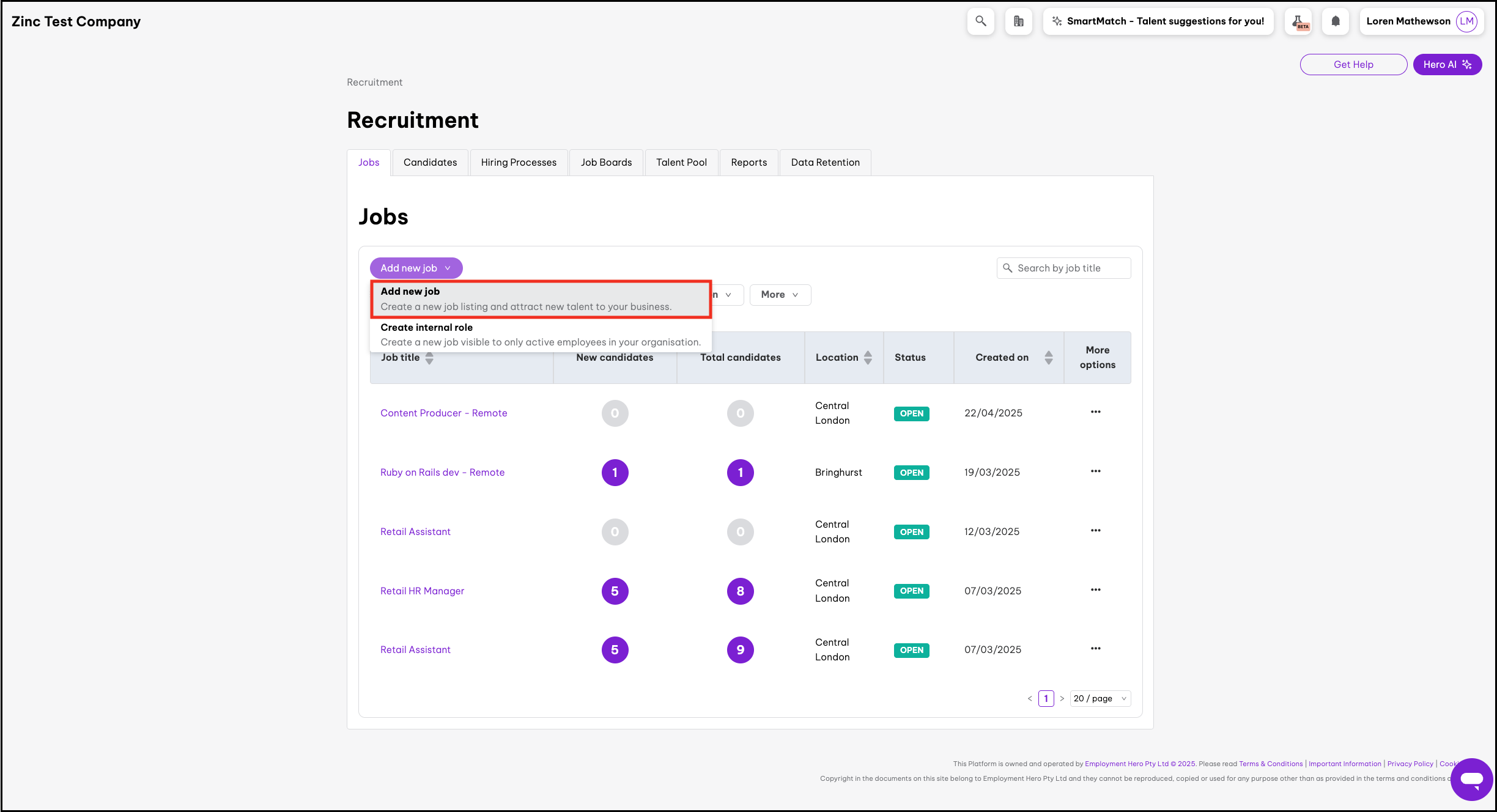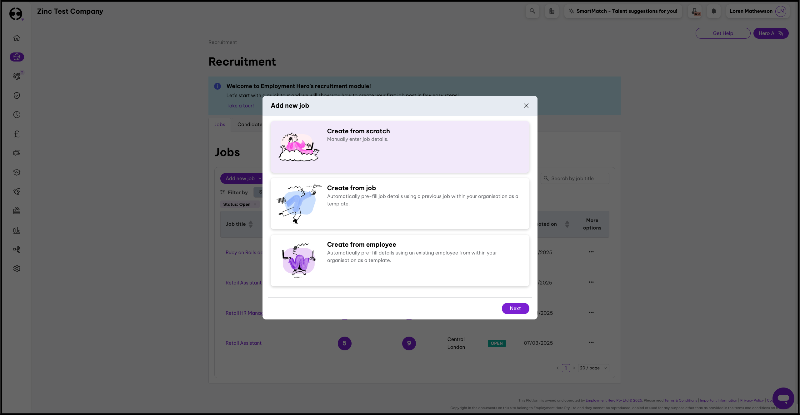 - Click on Recruitment on the left-hand side navigation menu.