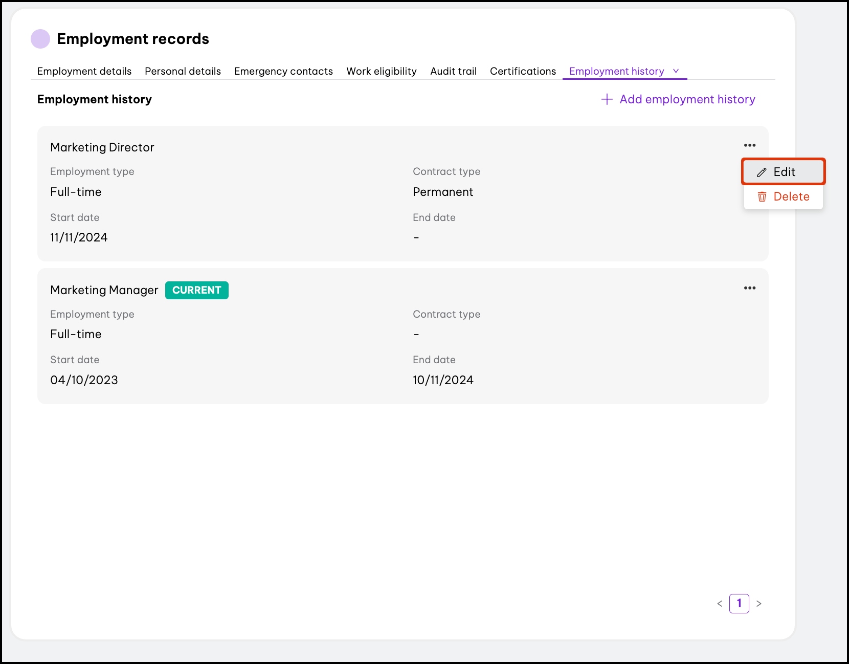 The Employment History feature is where you update these details if they change, with the HR platform reflecting these changes throughout the entire platform. It means there is only one place you need to update your details if they change, making sure your employee records on the HR platform are always up to date.
