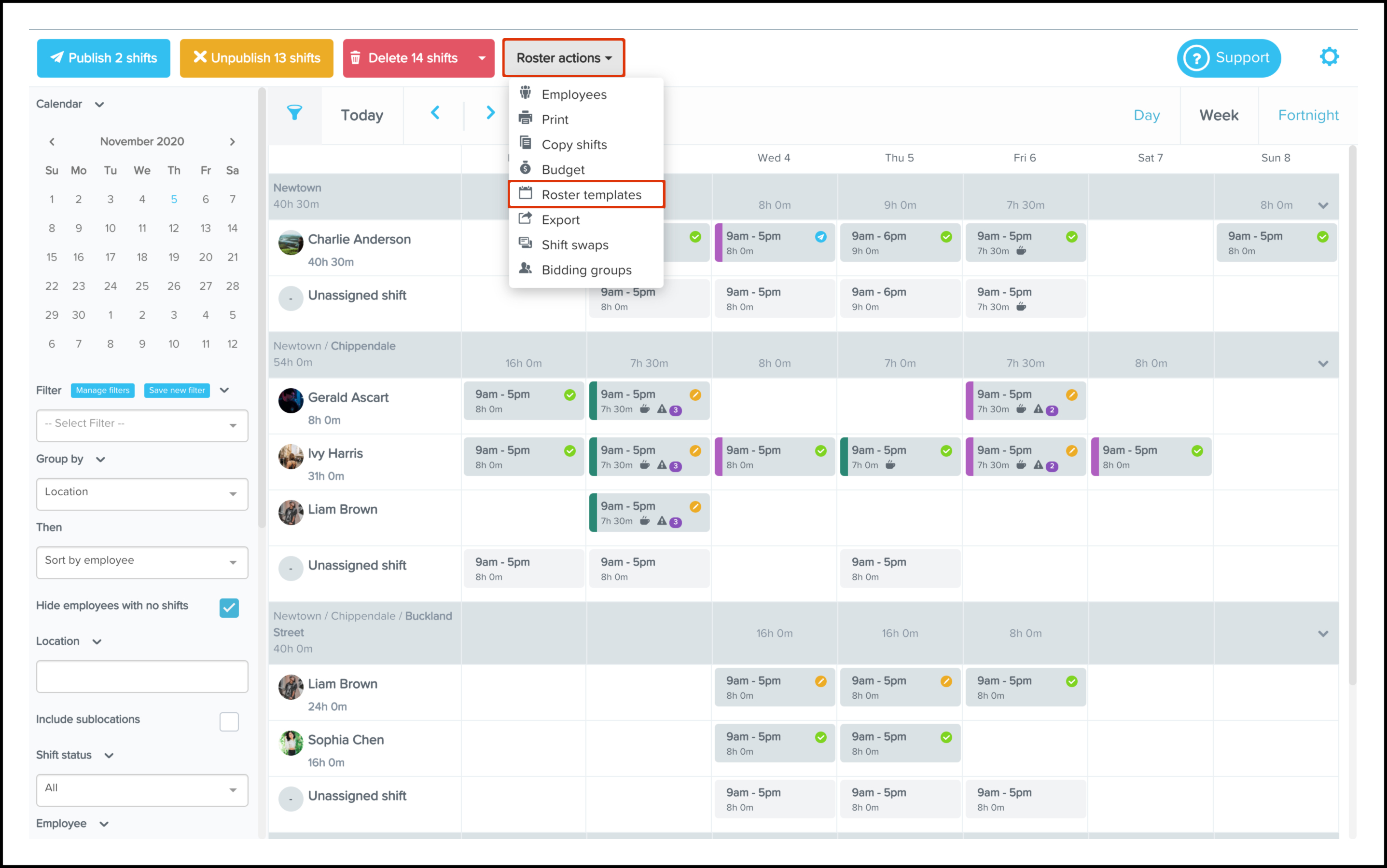 You only have access to roster templates that match your user permissions. Managers with restricted access, i.e. employee or location access, will be able to view a roster template as long as they have permission to view the employees/locations within the template.