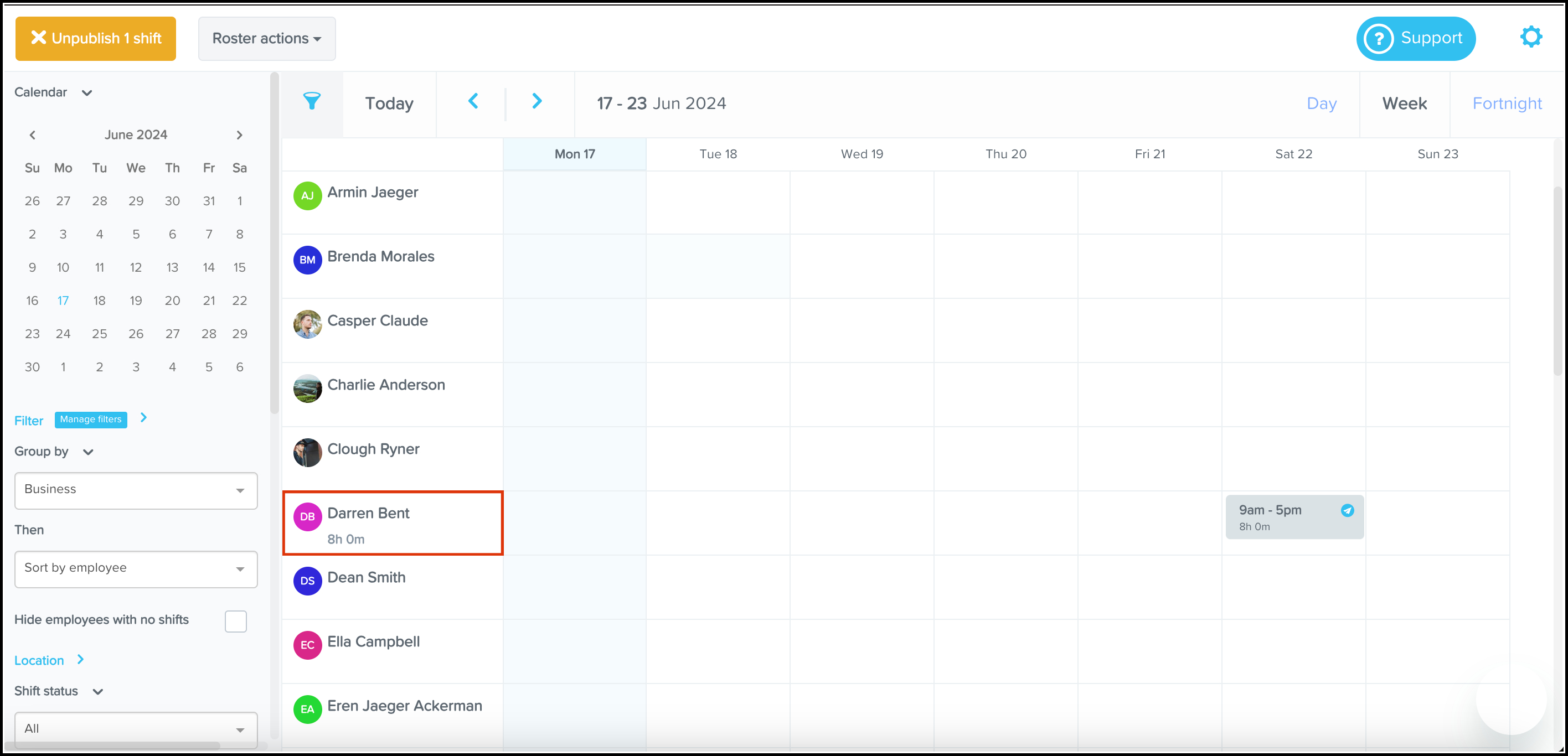 You will now see the details of your roster template on your screen where you can now edit your resources, shifts or bidding shifts, with the platform saving any changes you make automatically.