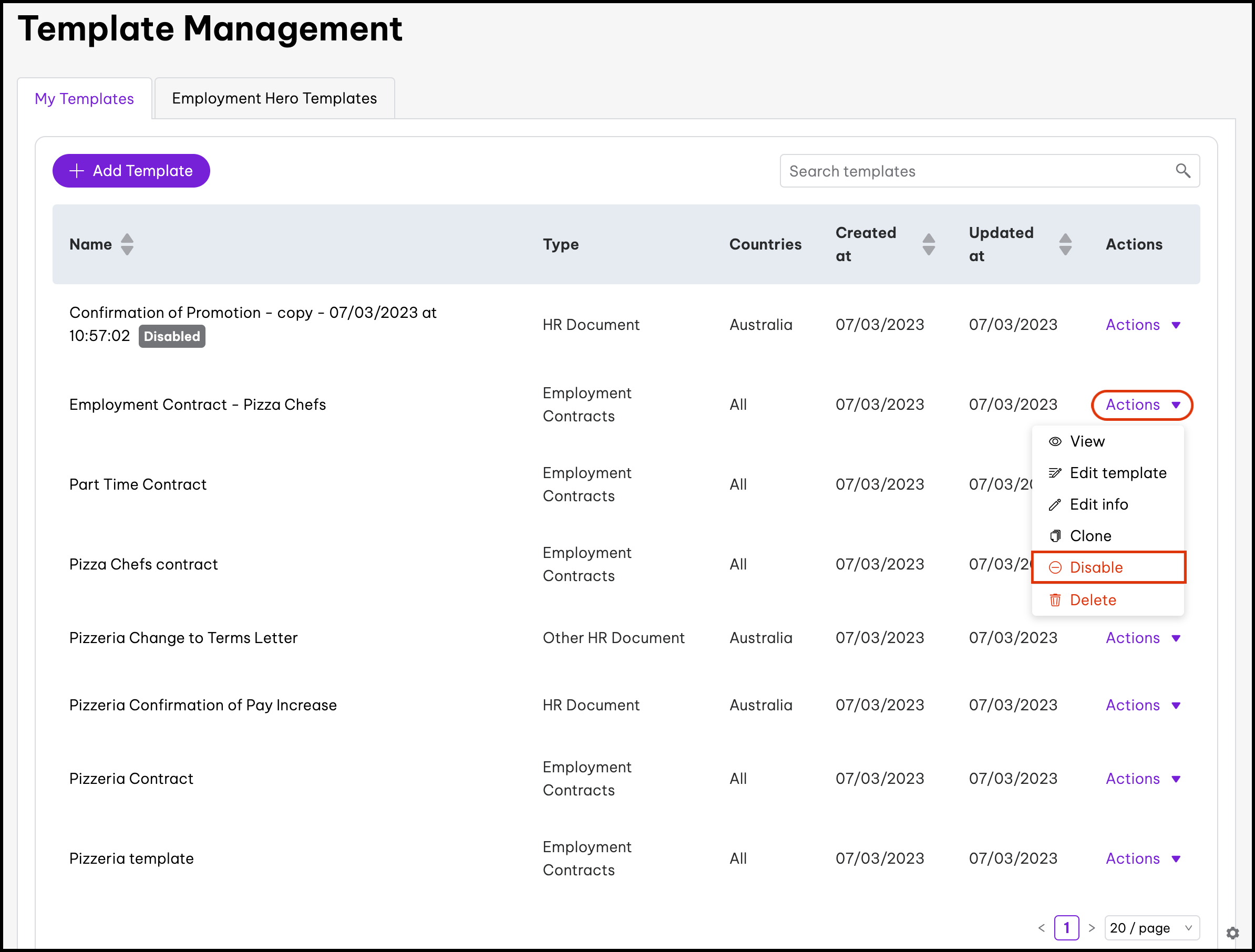 You will now see the template on your screen. To learn how to use the various template types, click the Employment Hero Help Centre articles below to learn how to do the following on your documents: