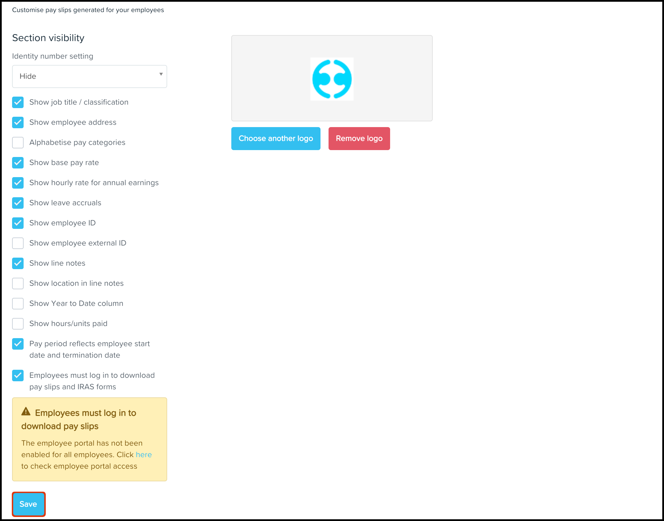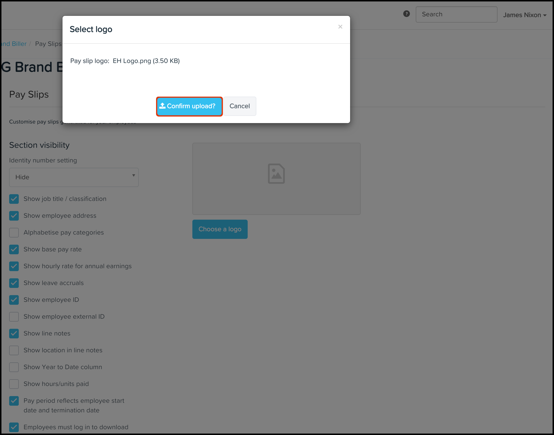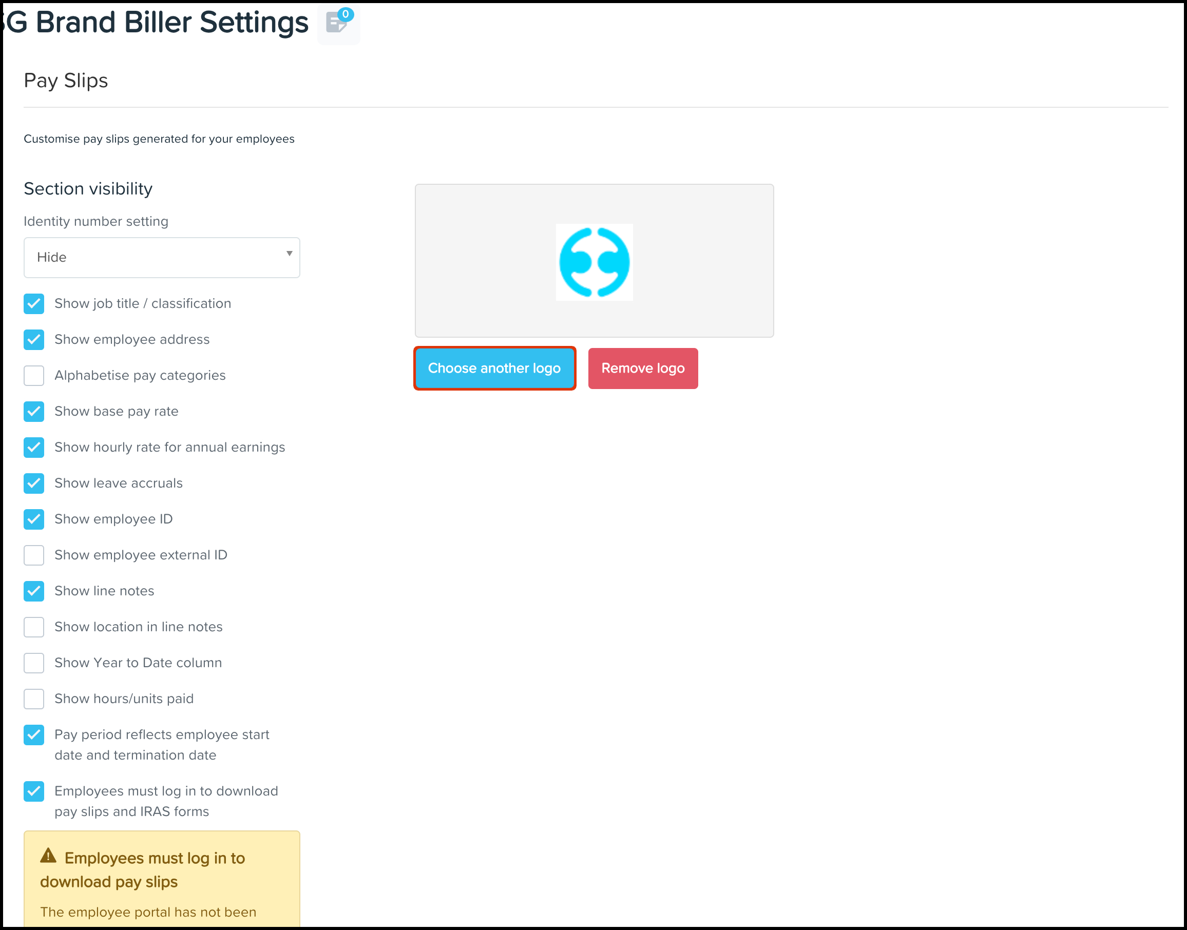 For customers with an HR and Payroll connection, please ensure that you upload a logo for this to appear on the payslip on the HR platform.