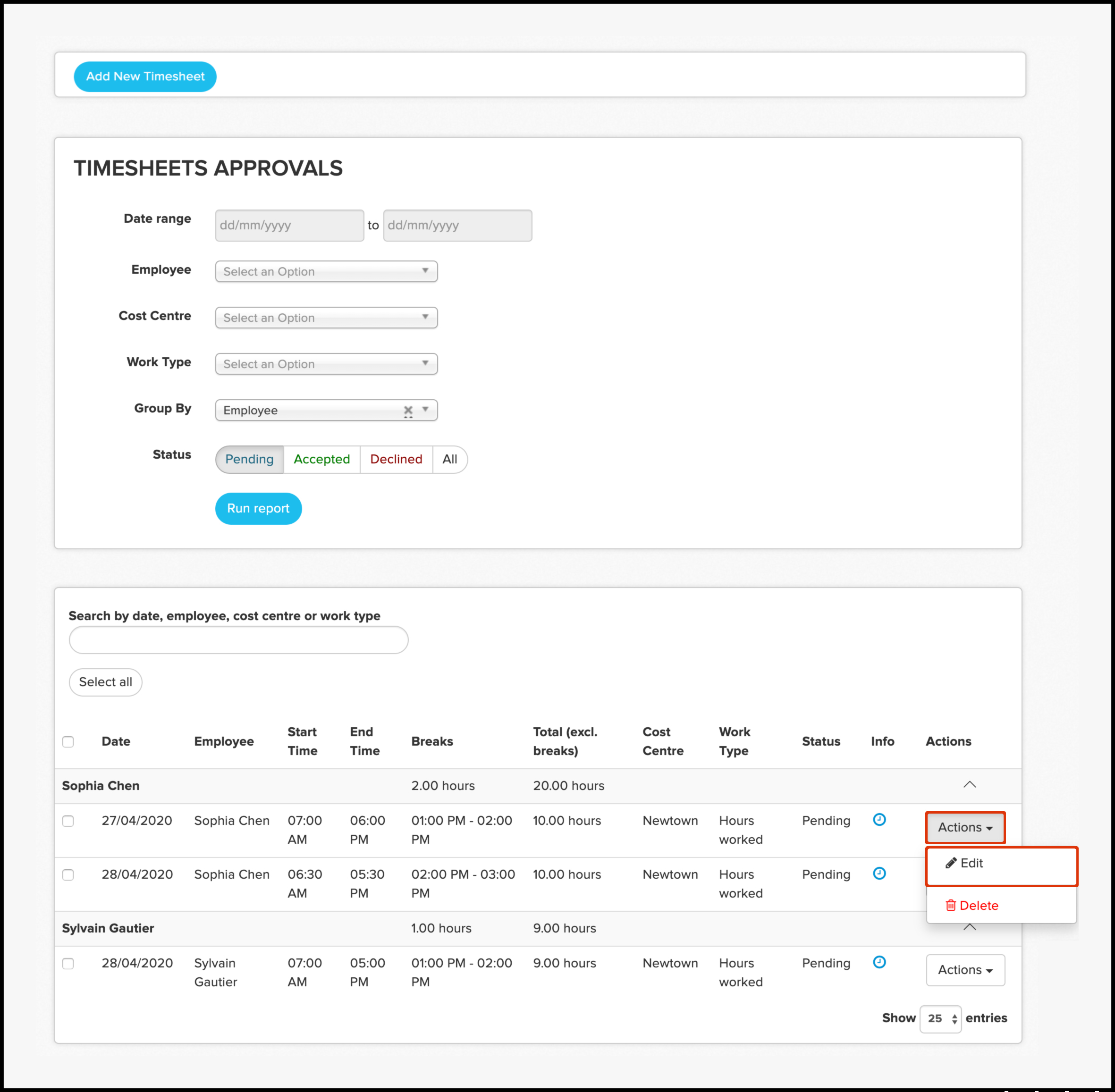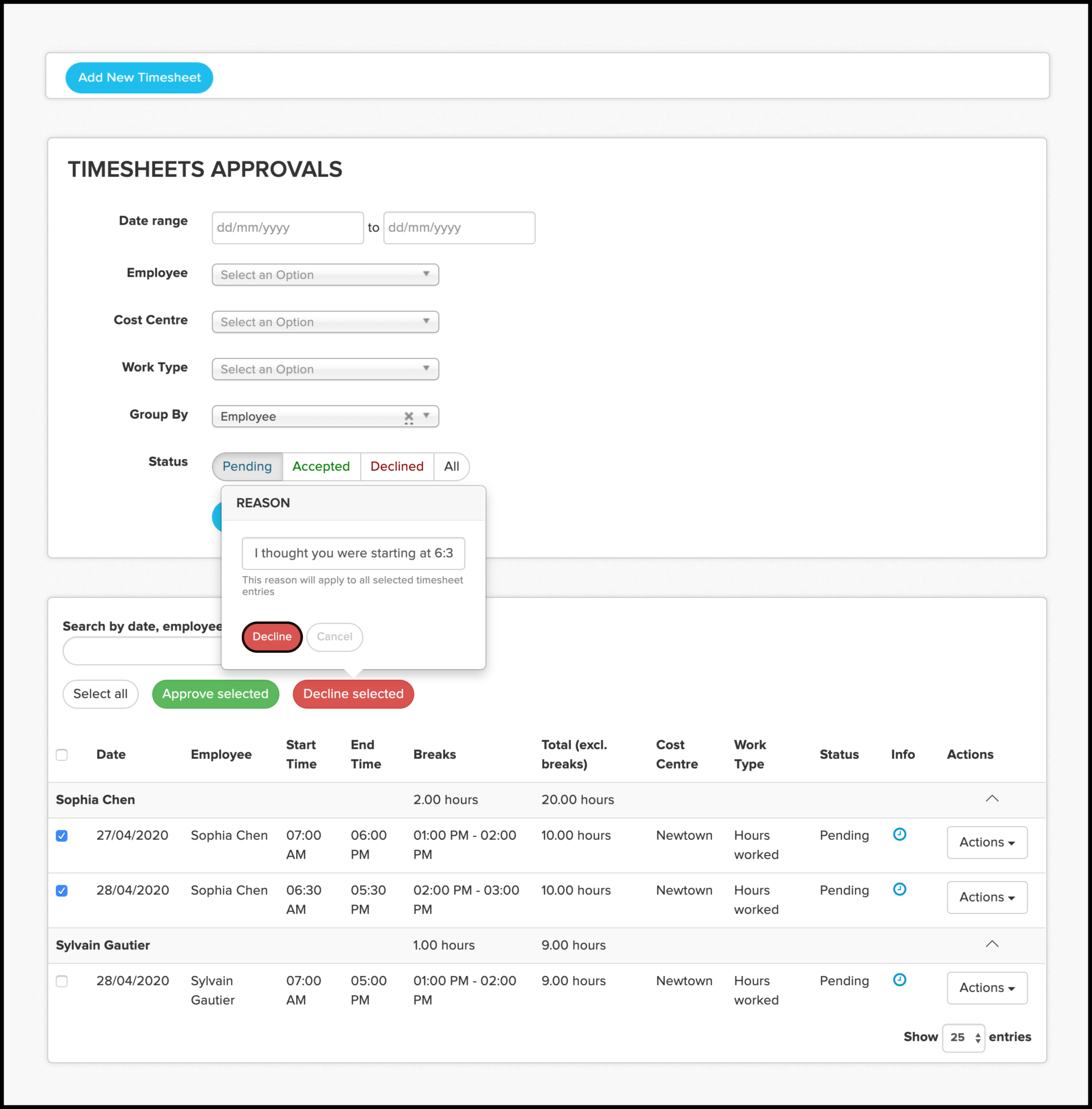 Approve and decline timesheets