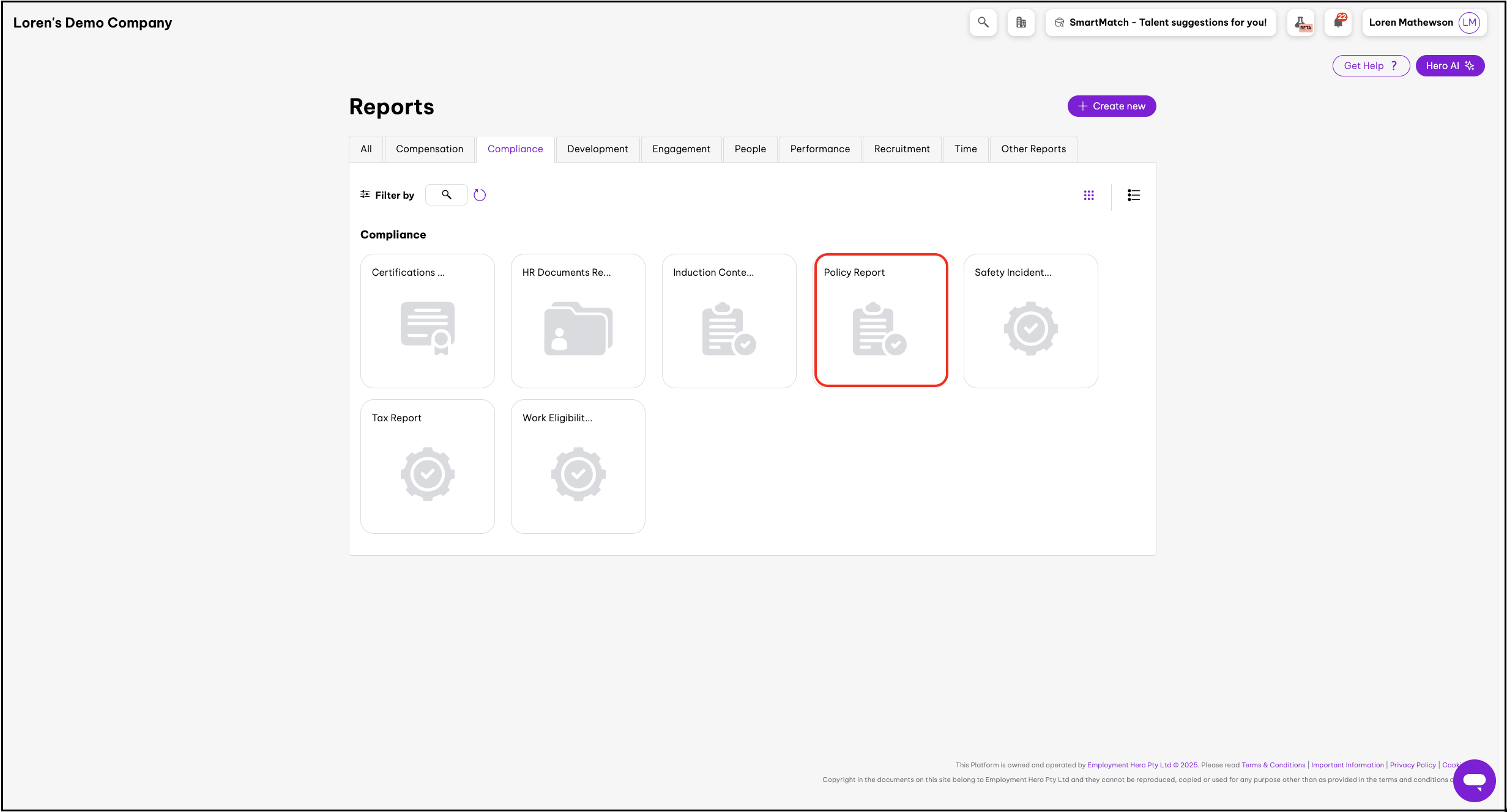 Only policies marked as mandatory will be reportable via the Policy Report. This is because employees do not need to acknowledge non-mandatory policy content within Employment Hero.