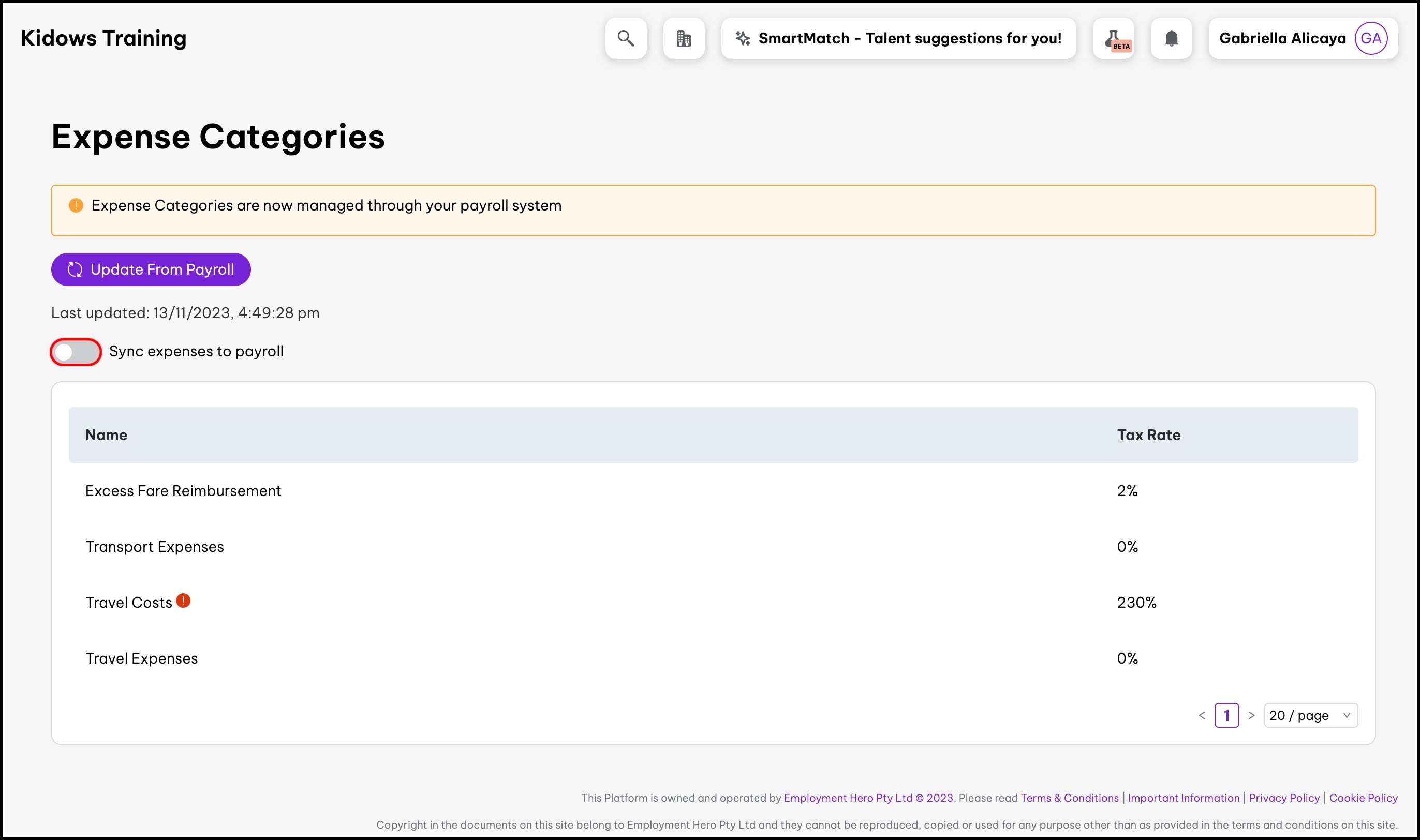 Add your expense categories to your Payroll platform