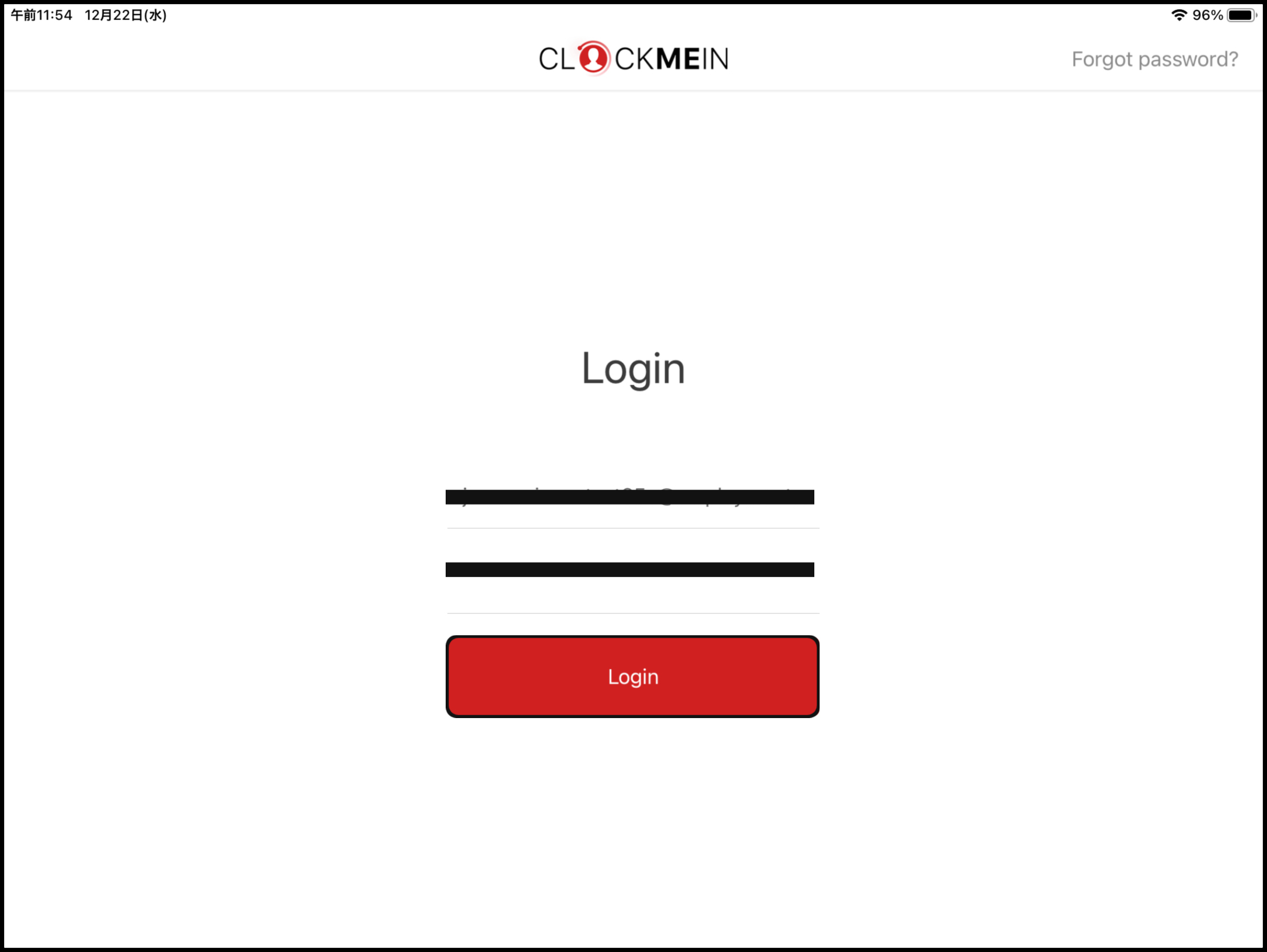 When first logging into Clock Me In app (downloadable for iPad users on Apple's App Store), you will need to enter the username and password you would use to log into the payroll platform. You can then select your admin passcode, and what business and kiosk the app loads.