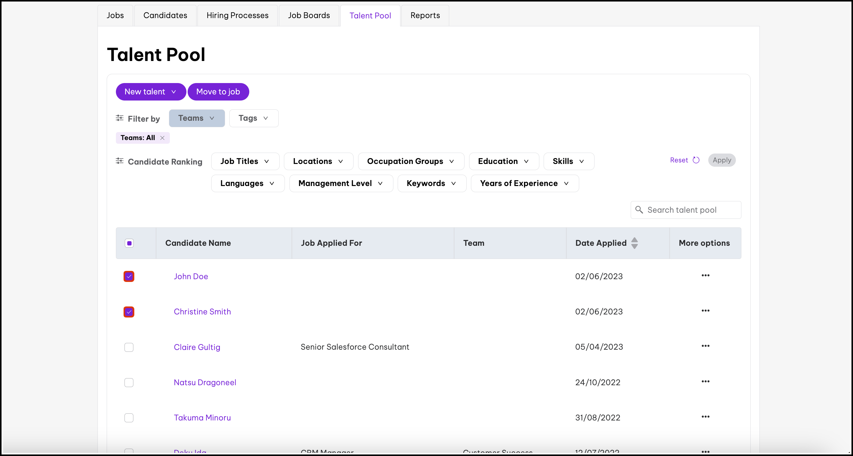 6. Select the job you want to move the candidates to.