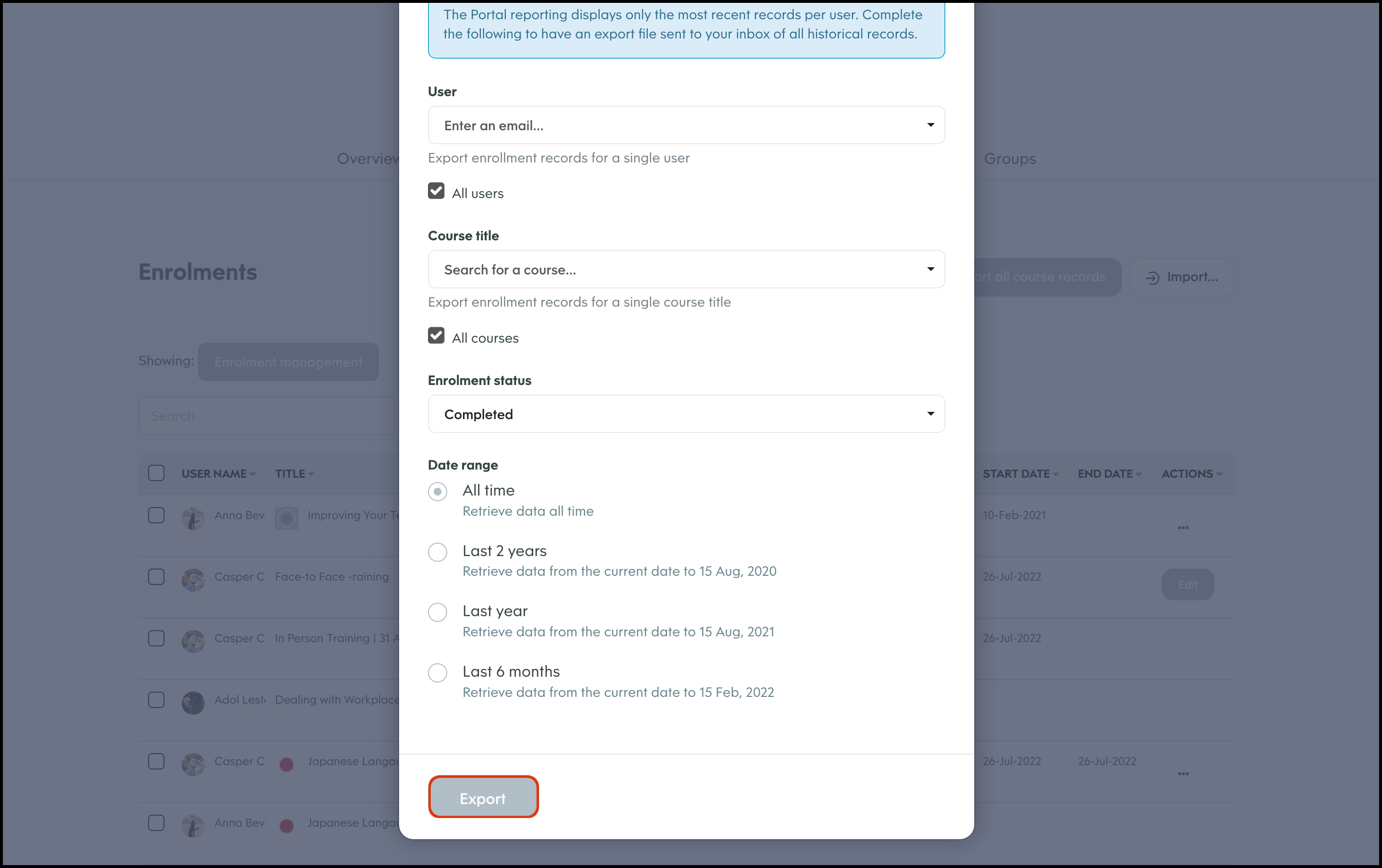 Export enrolments as a CSV