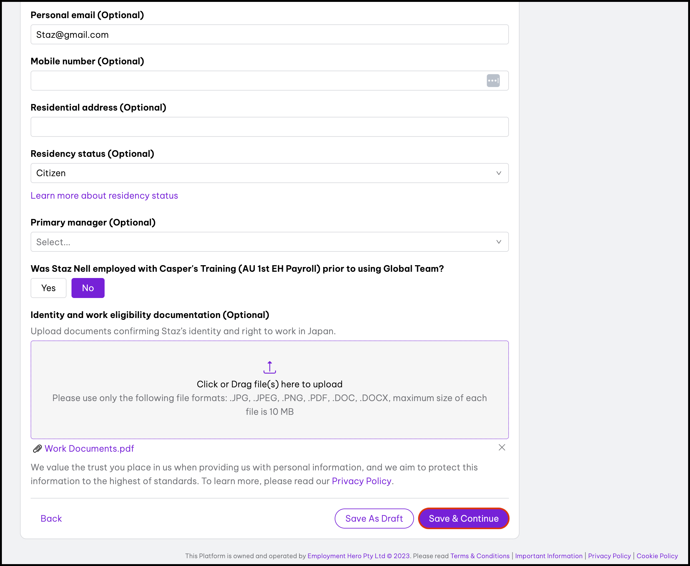 - Onboarding: Once the employment agreement has been signed, we will onboard your new hire into your Employment Hero organisation.