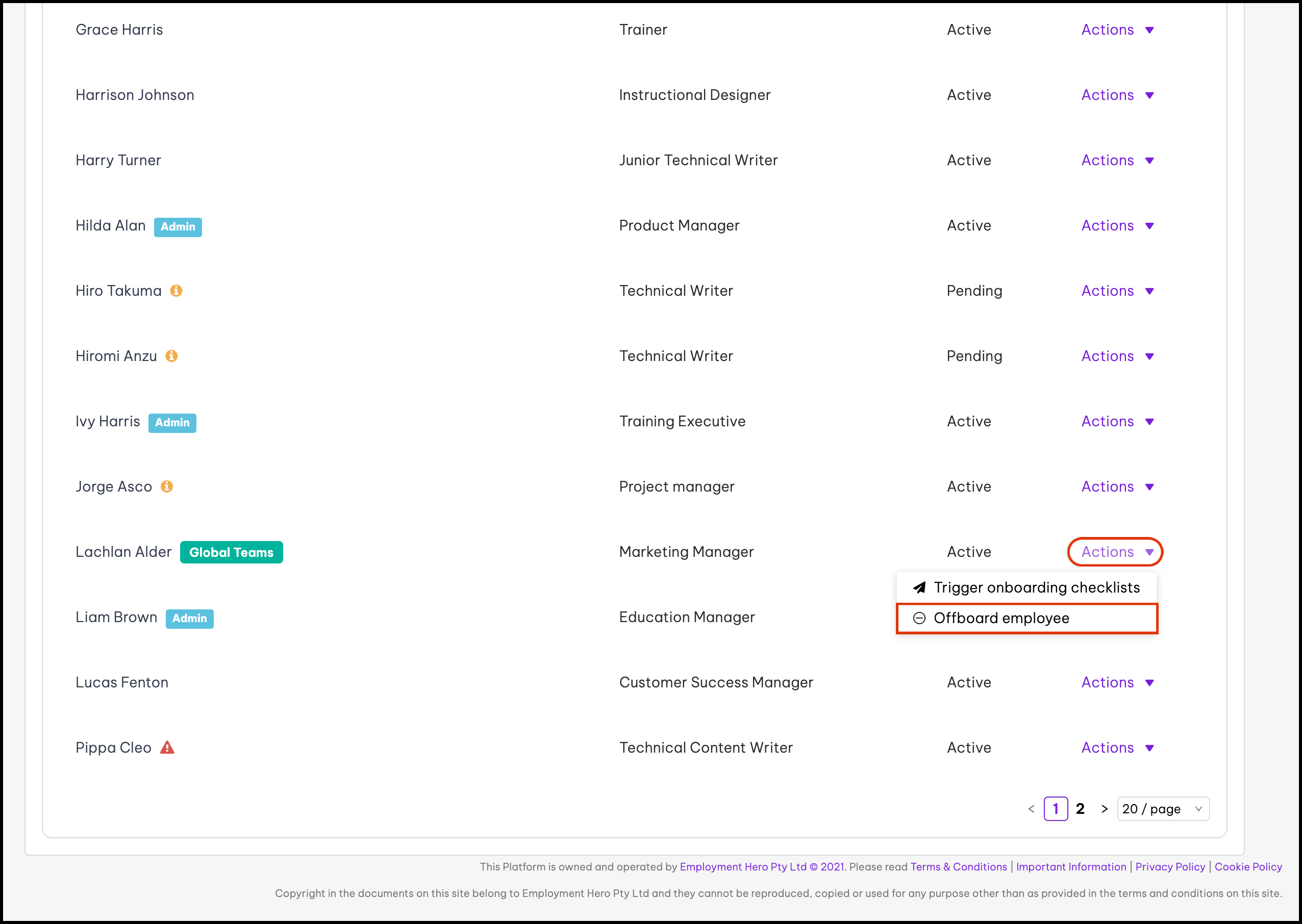 Global Teams employees are employed via Employment Hero. Therefore, unless the employee is resigning, you can not directly offboard an employee and must instead contact the Employment Hero team to begin this process.