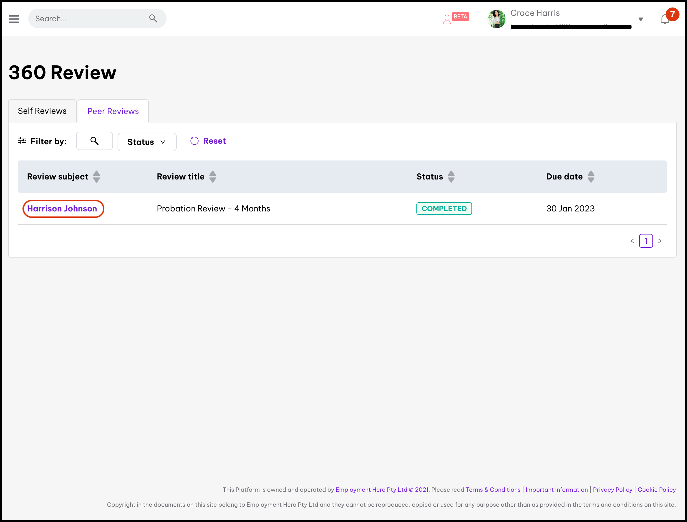 The 360 Self Review and Peer Review feature allows you to submit a 360 review by answering the questions your organisation has set out for you for discussion during a performance review meeting. You can also view your answers from this section as well if you want to check what answers you provided for a given question.