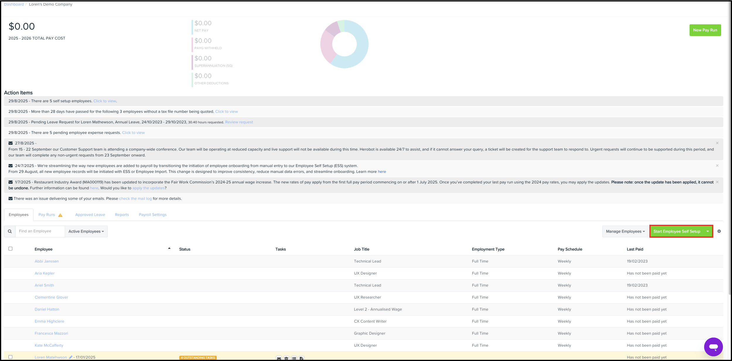 You will receive an email once employees have completed their setup. From there, you will be able to review and complete the process so you are ready for your next pay run.