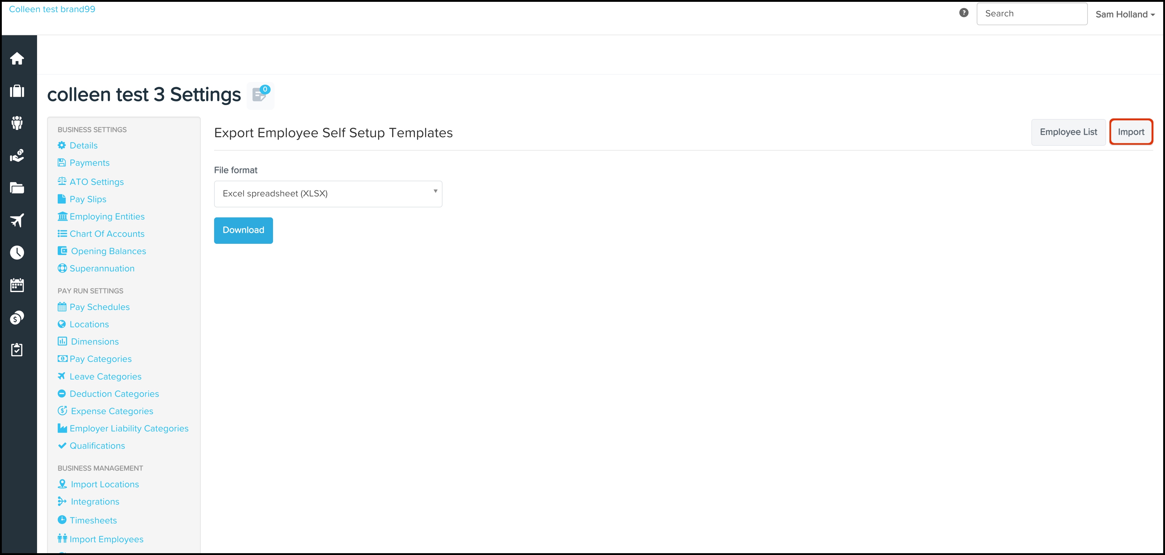 6. Click the Download button to download Employment Hero's Employee Self Setup template file.