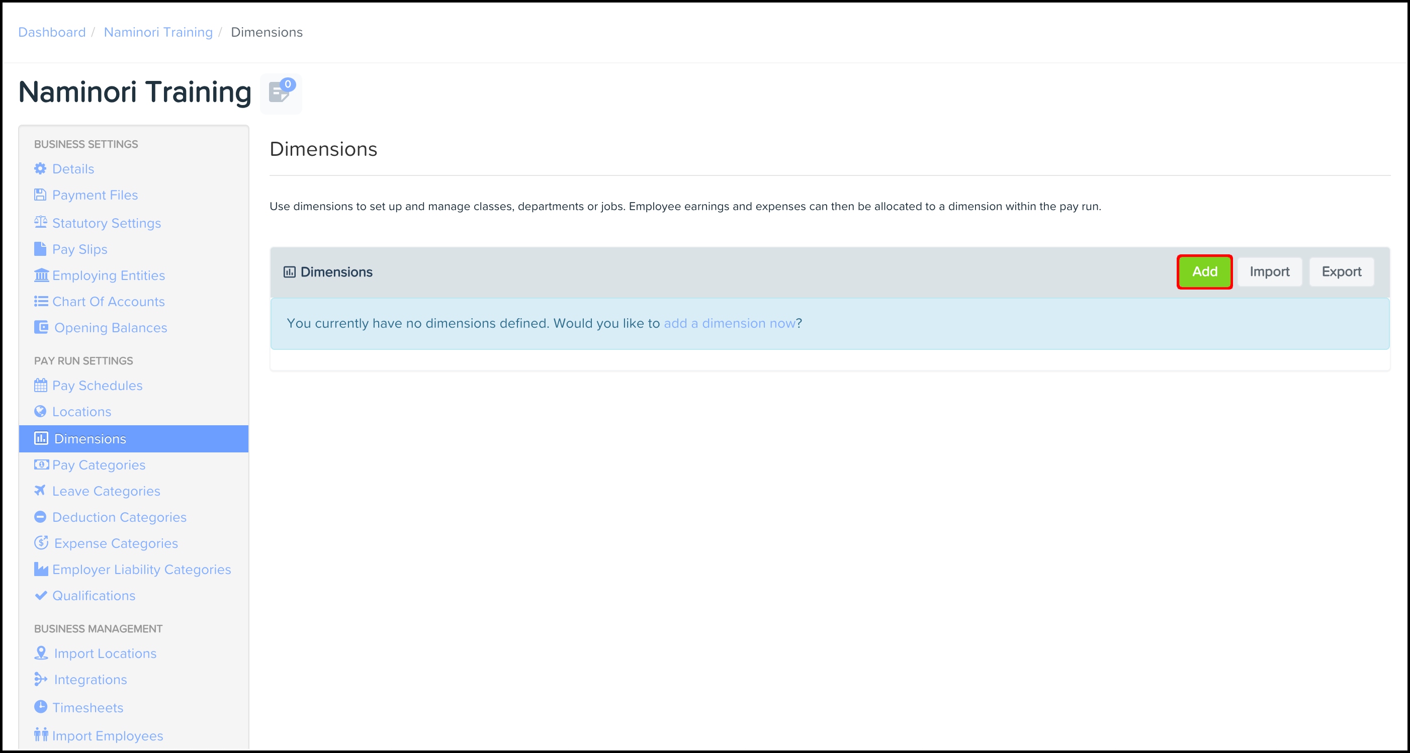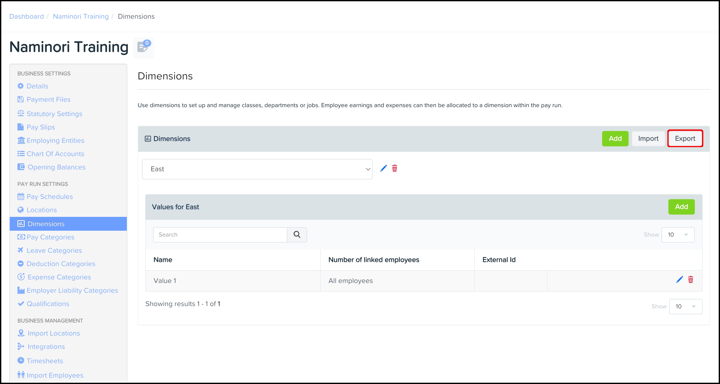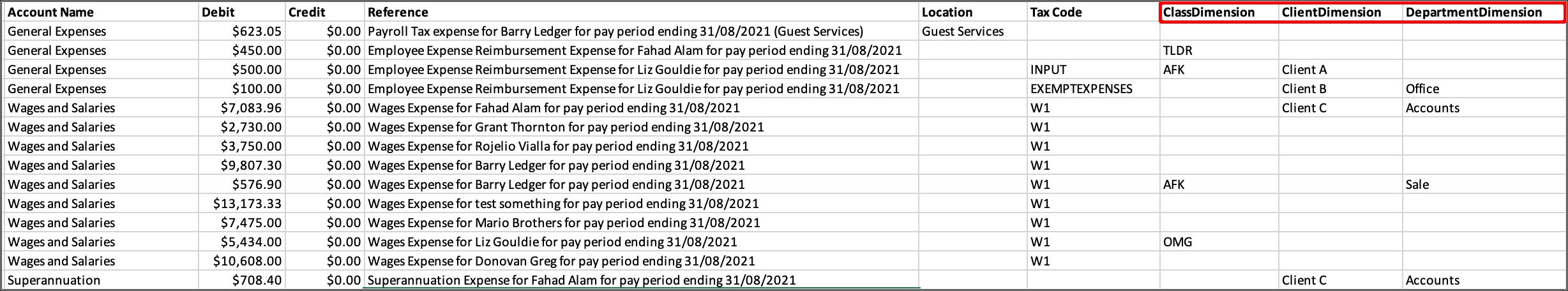 However, businesses that are currently connected to another accounting service can export the dimension data from the Download journal button in a finalised pay run.