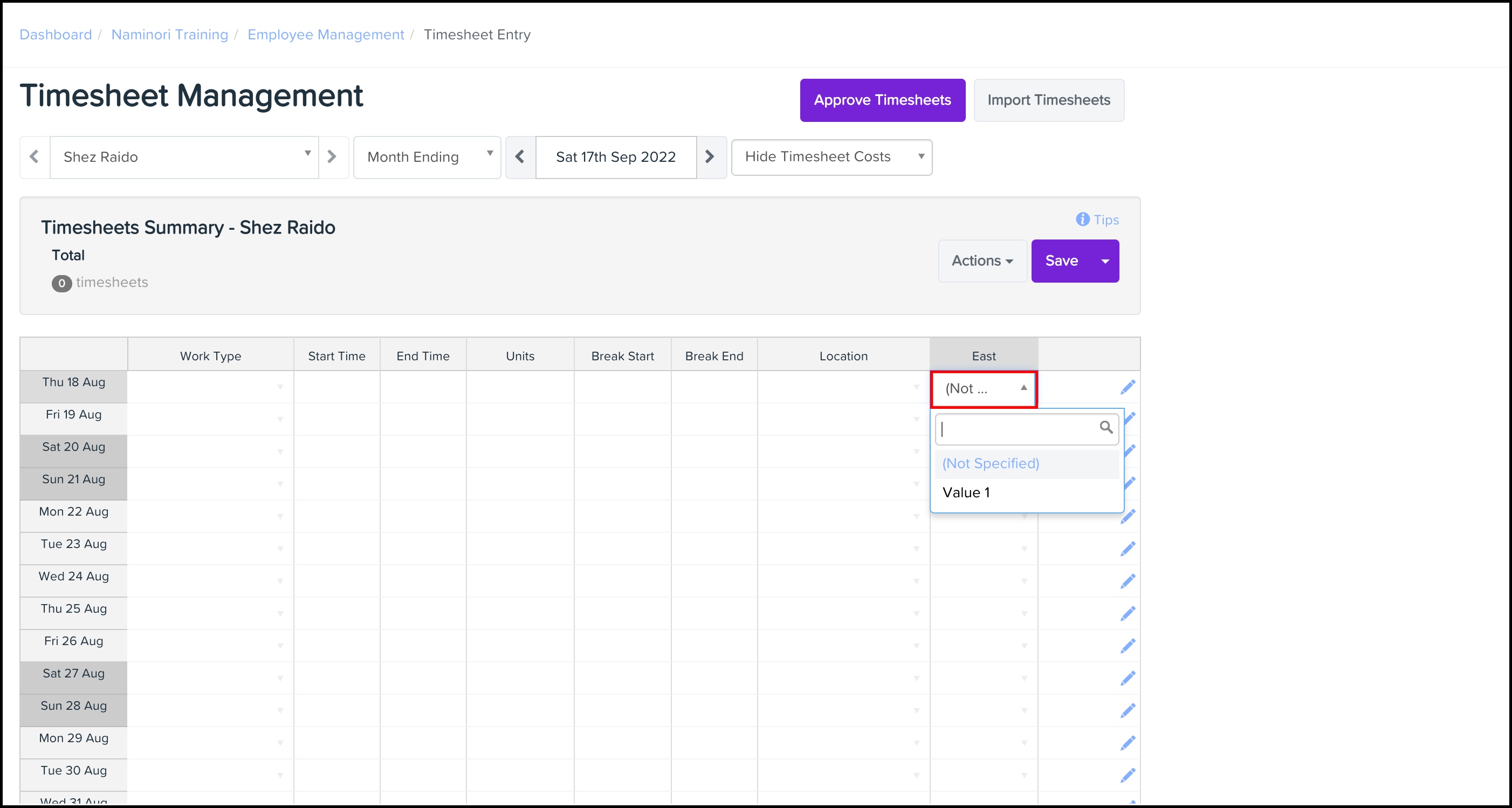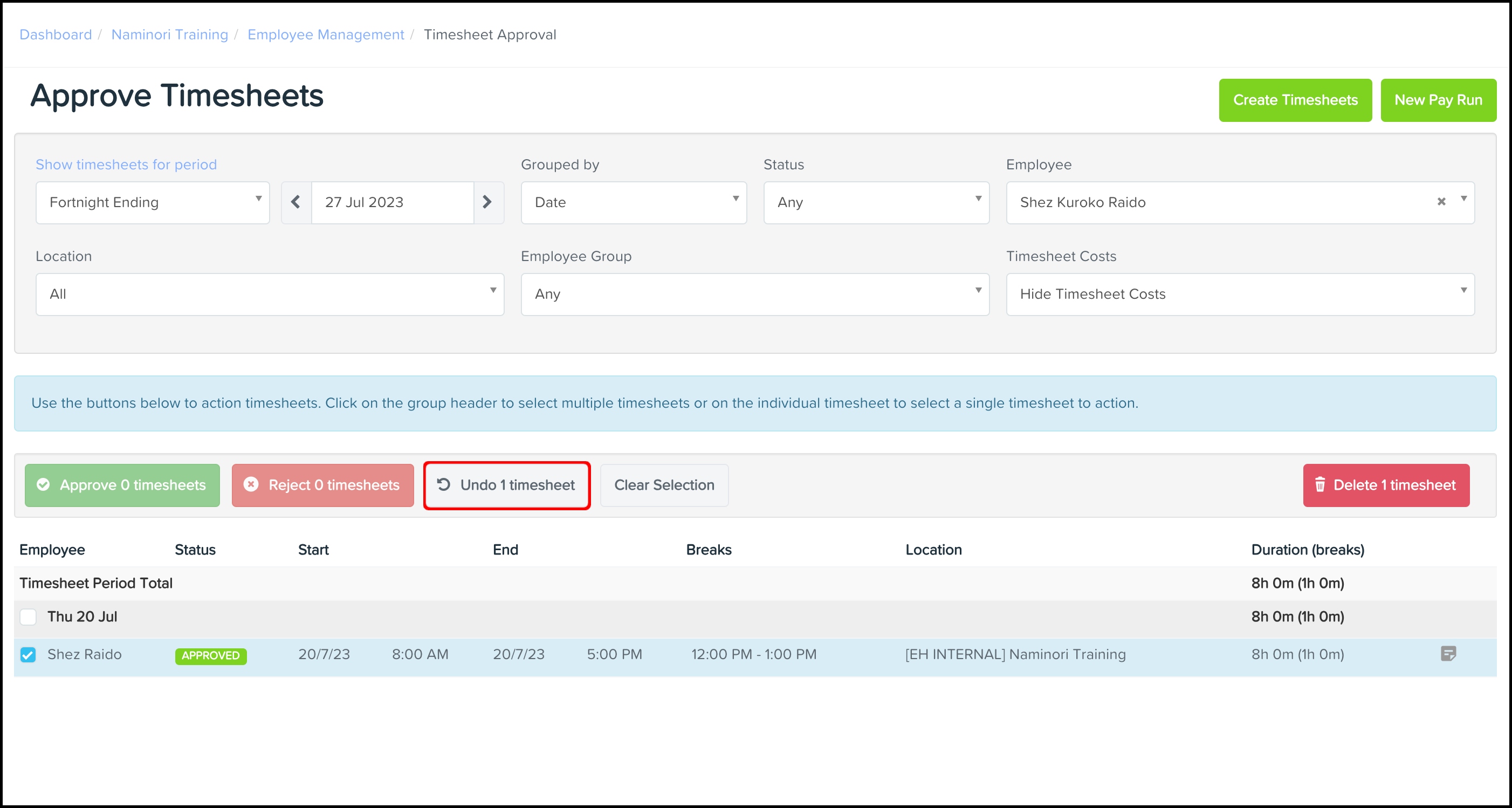 - Click Undo 1 timesheet to revert it to a submitted status.