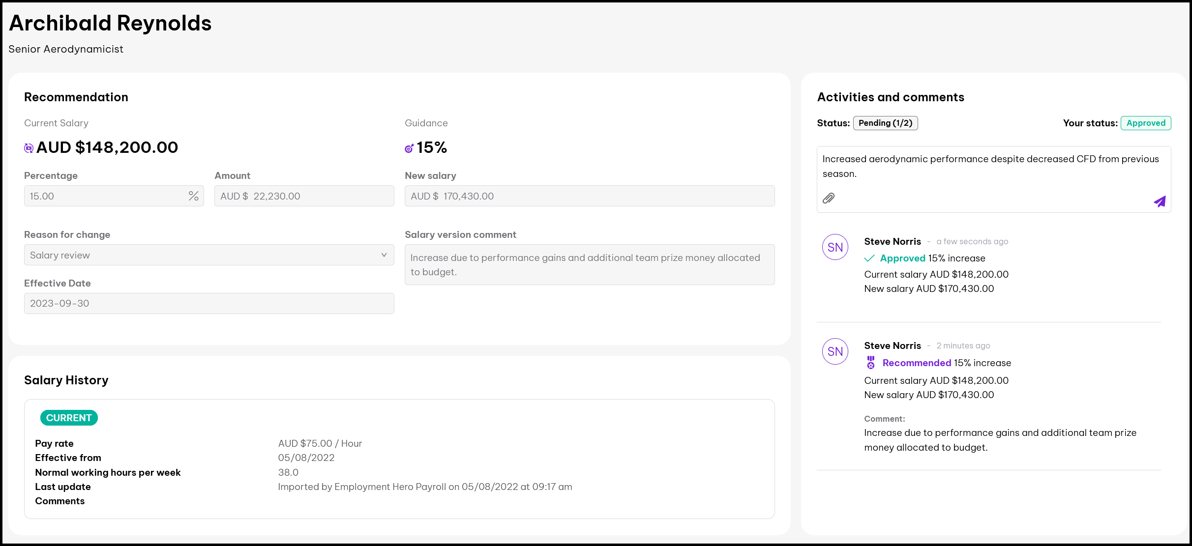 The Compensation Manager feature allows you to manage salaries, bonuses, and benefits in one location. By using the Compensation Manager, you can make sure that any compensatory changes are managed fairly and effectively. The feature is currently on a pre-release trial; further details regarding the full release will be announced soon.