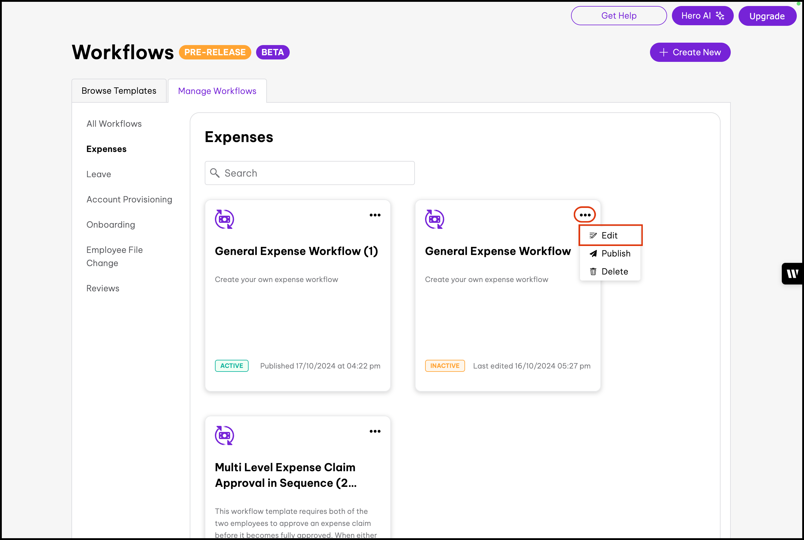 Don't have access to this feature? Contact our friendly sales team here if you’d like to upgrade your account to gain access to expense workflows with Employment Hero today.