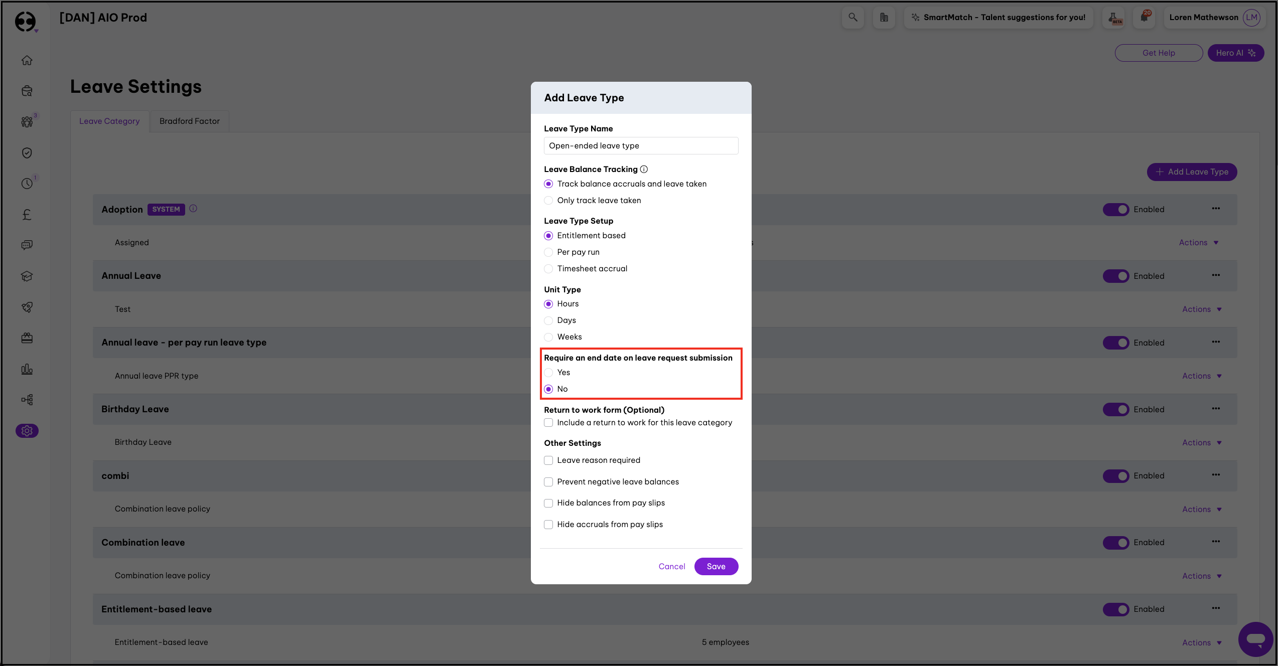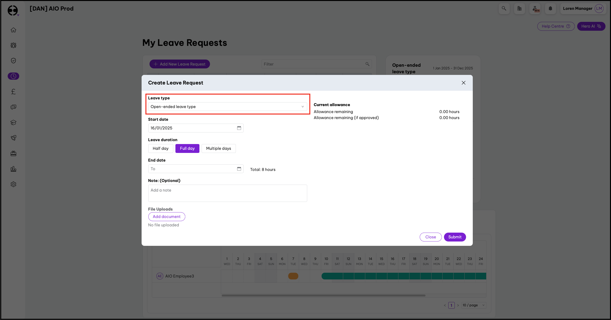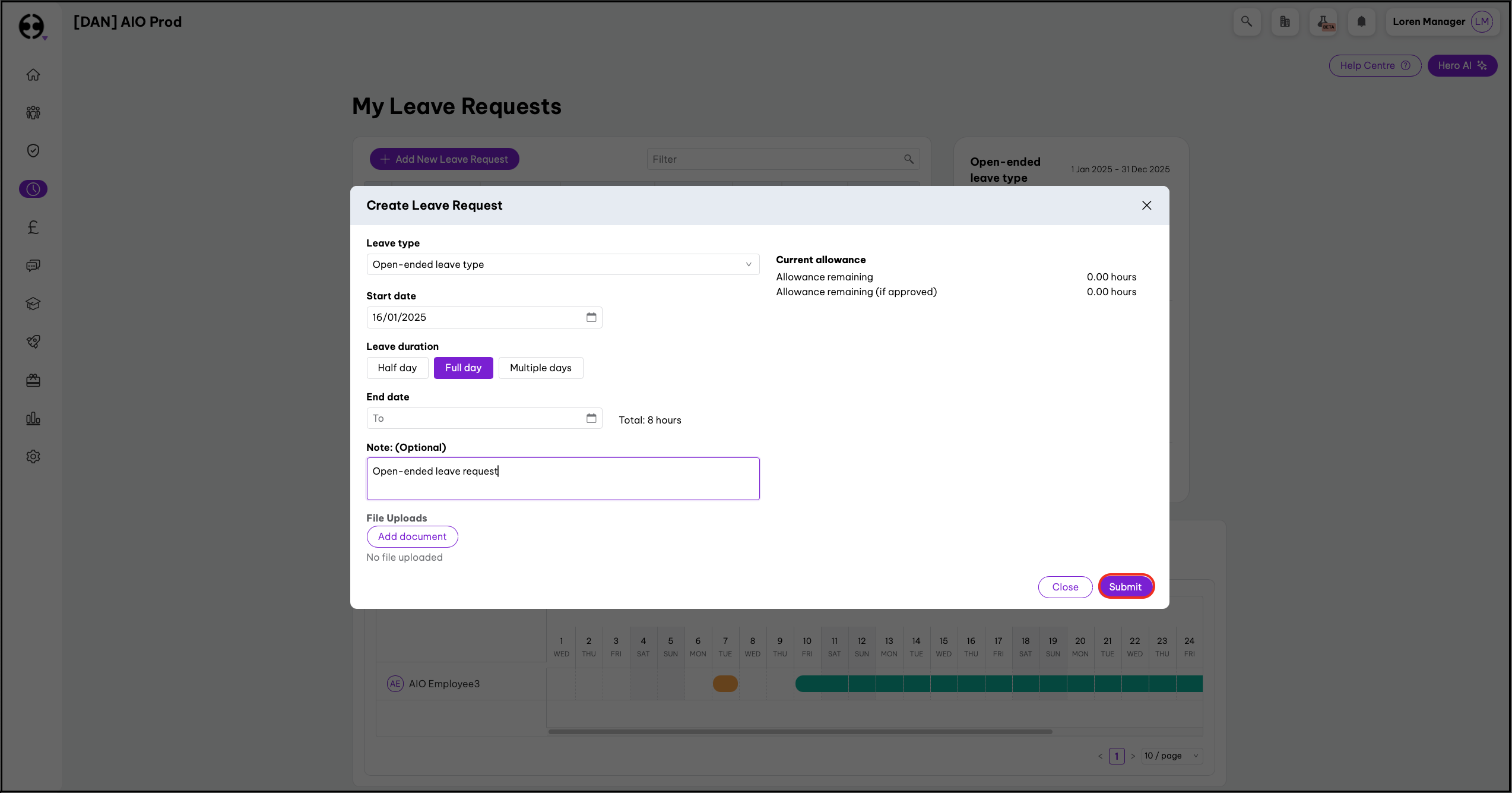 The HR platform allows employees to create open-ended leave requests, in which they will not specify a return date. This can be especially useful for parental, sick or bereavement leave.