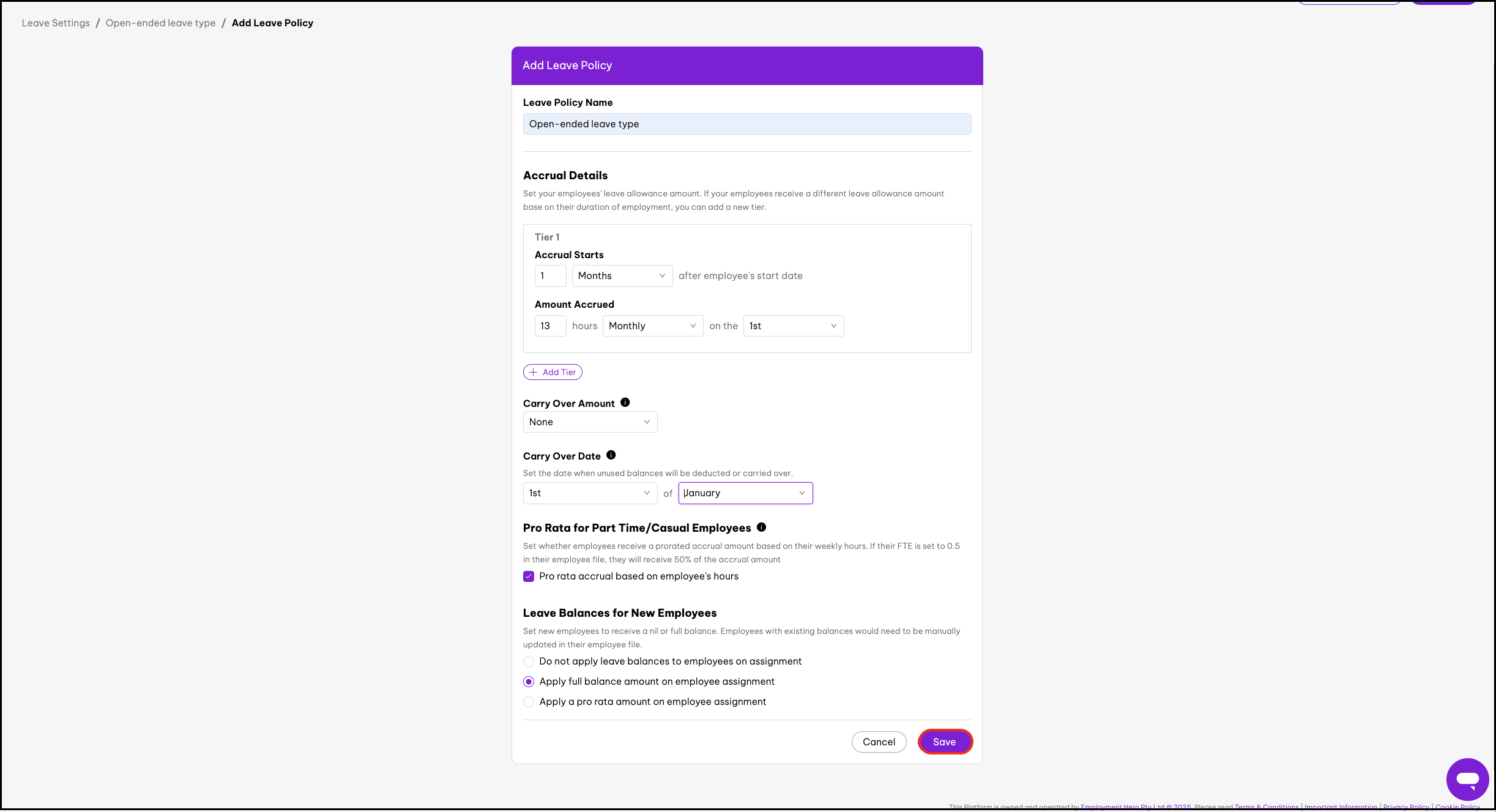 - Pro-Rata for Part Time/Casual Employees (select this option if you want your part-time workers to receive a pro-rated amount of leave)