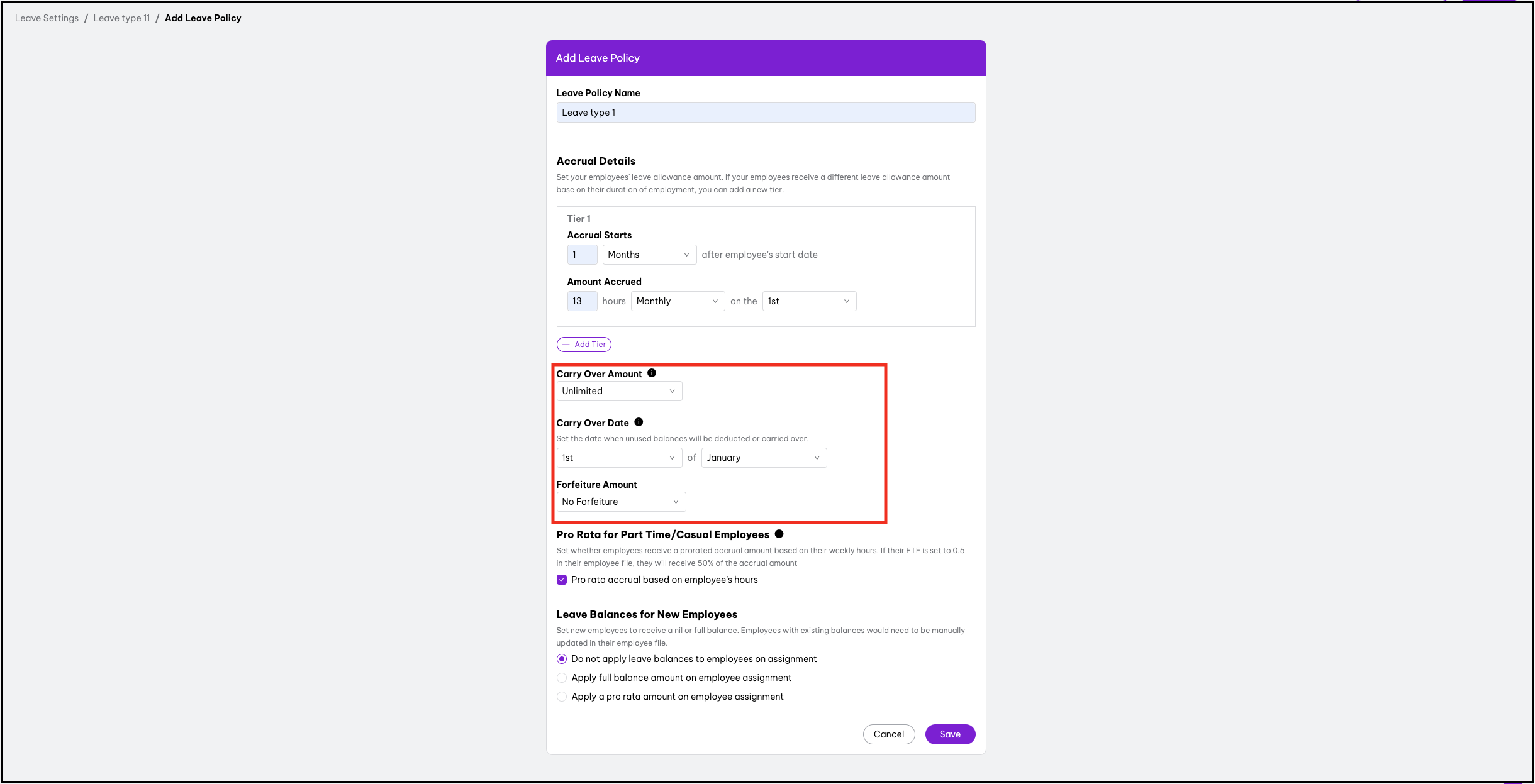 This article will outline how to set up leave carry-over and forfeiture, and how to edit and delete these settings.