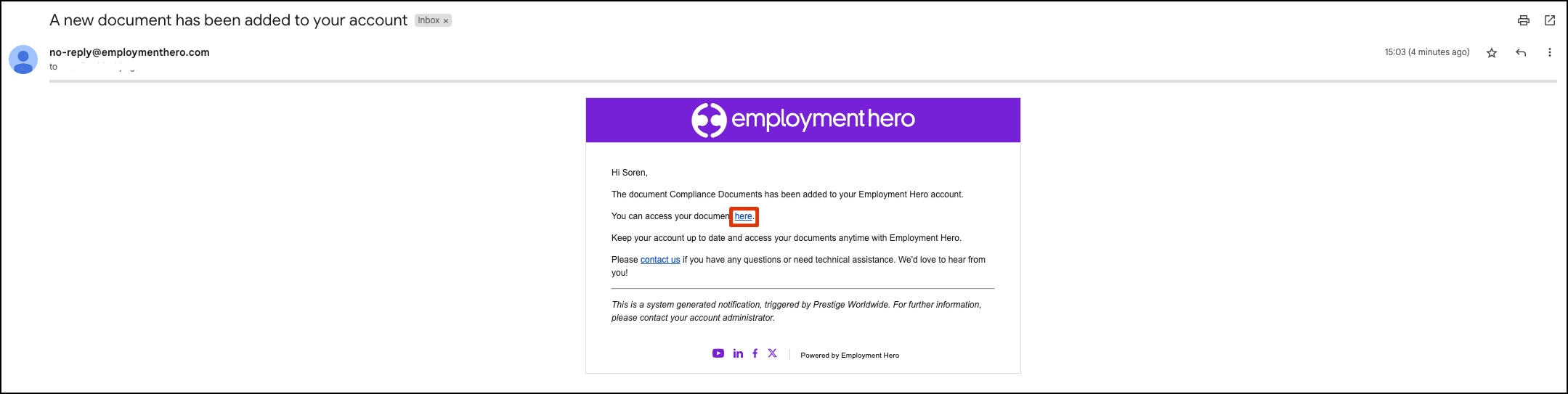 An admin or manager may also assign documents to you. If so, you will receive an email with a link to view the document. Please note that if you are assigned multiple documents, you will receive separate emails for each, and will need to open and click each link individually to view these documents.