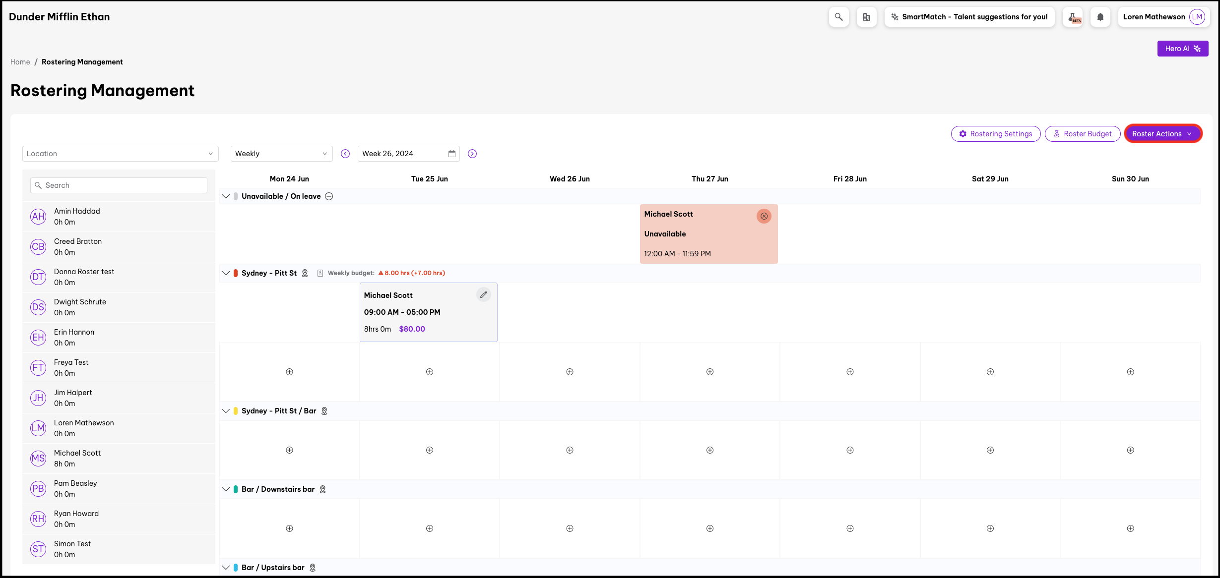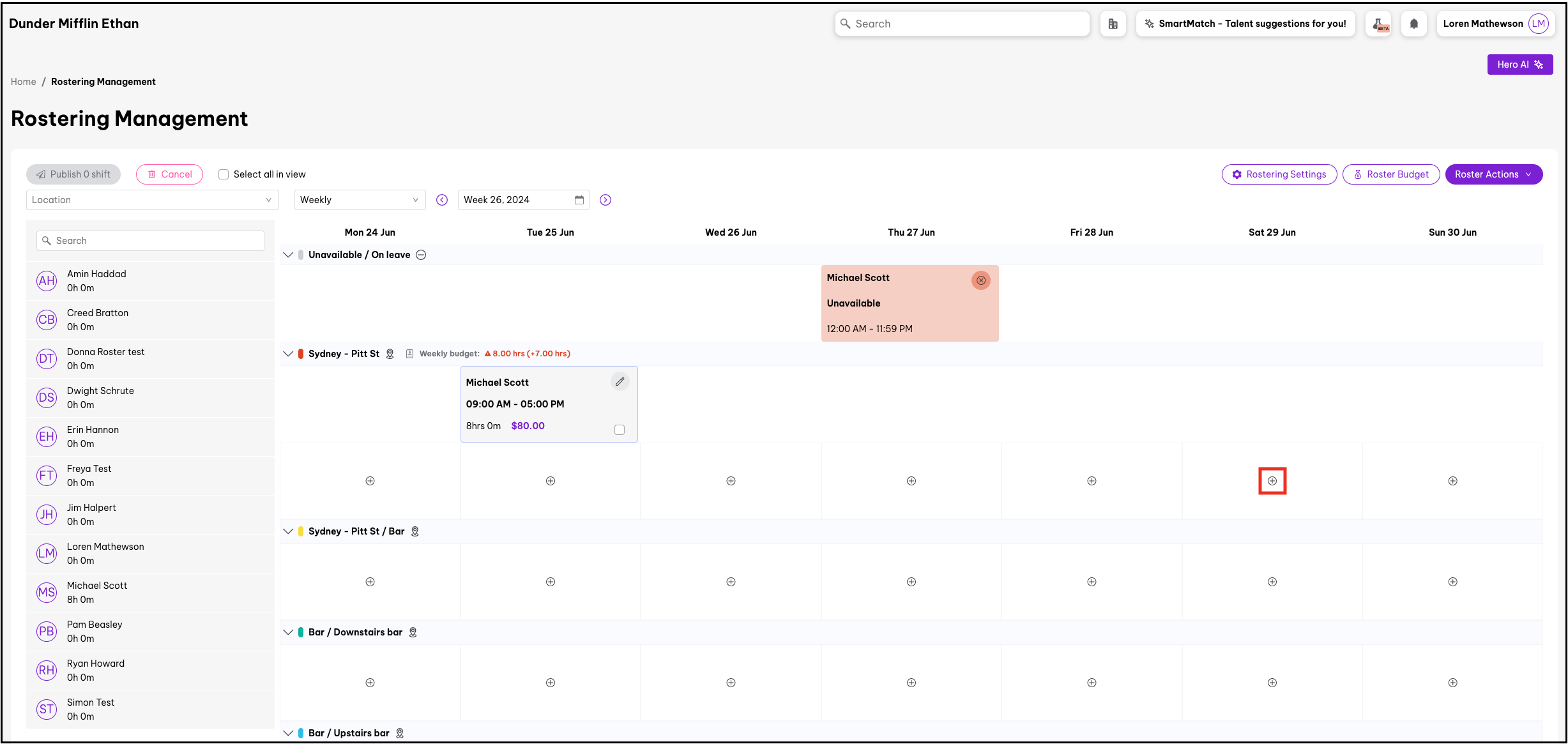 The shift will then be added to the successful employee's roster in Employment Hero Work, and you will see the employee assigned for the shift in Roster Management.