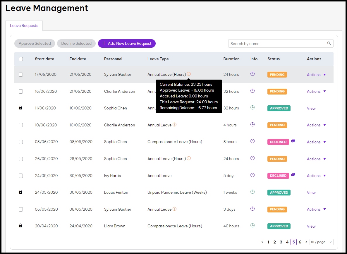 3. Accrued Leave: This is a projection of an employee's accrued leave until the start date of the leave request