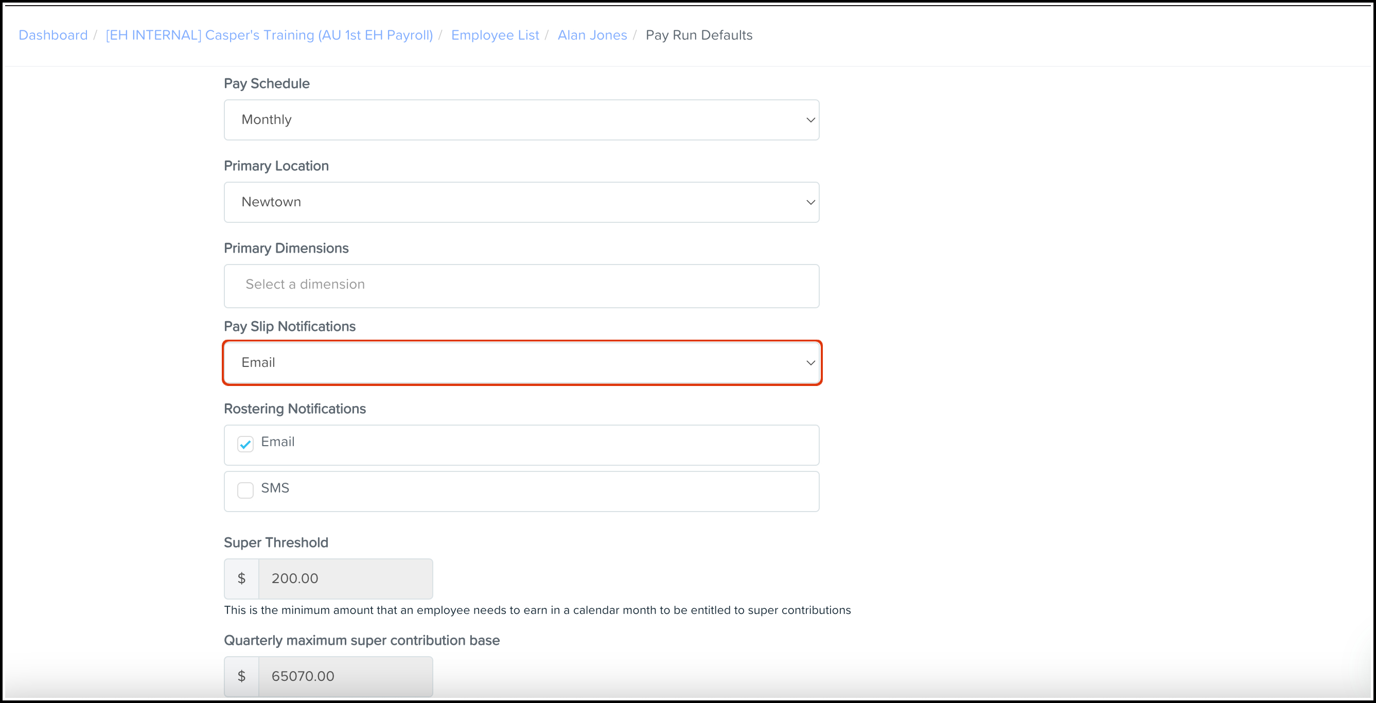 You can notify employees that they have a new pay slip in several ways, including via email, SMS or manually. You can also turn off pay slip notifications sent to employees from the payroll classic platform.