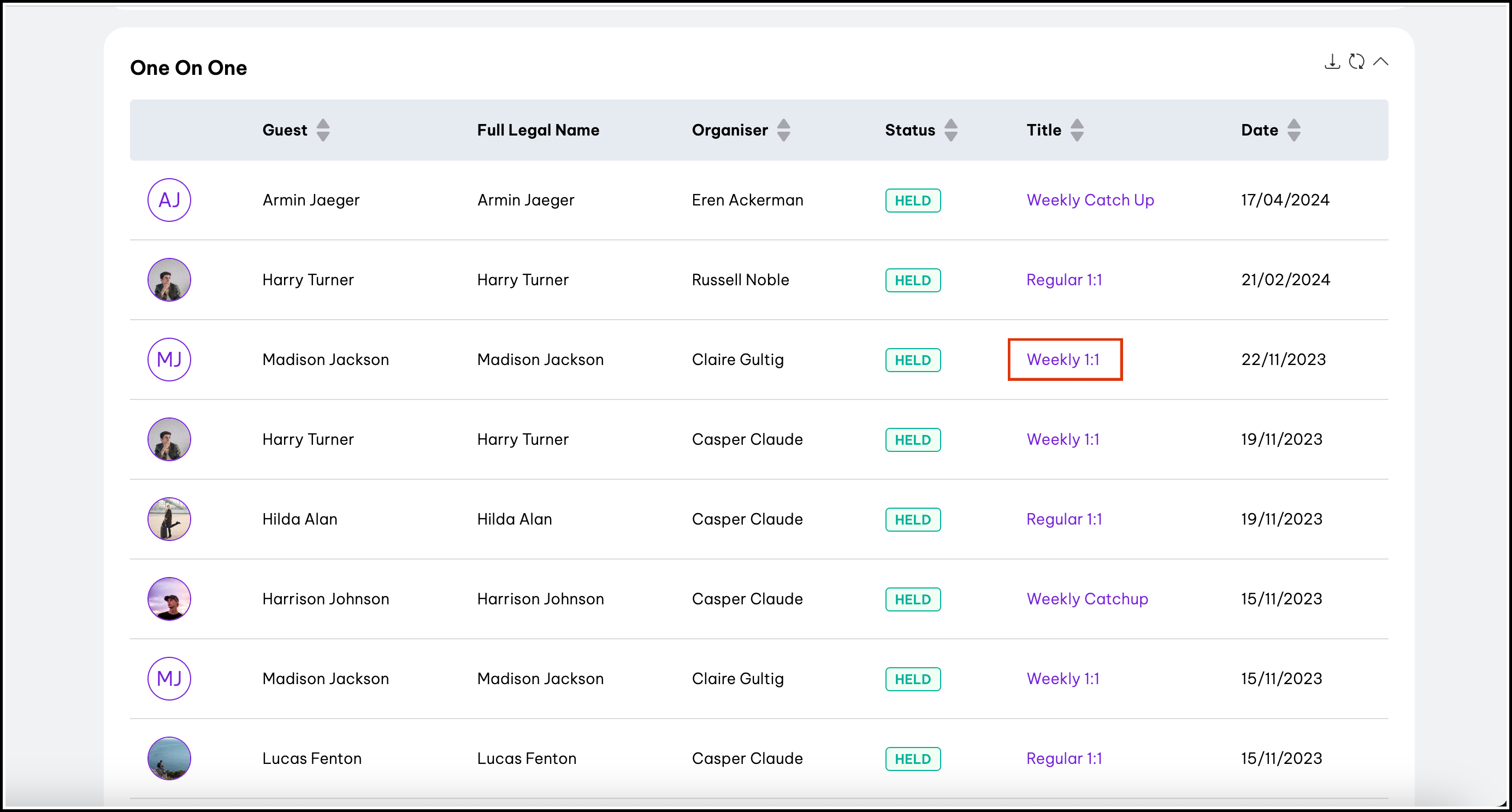 - Scroll down to the list view of 1:1s.