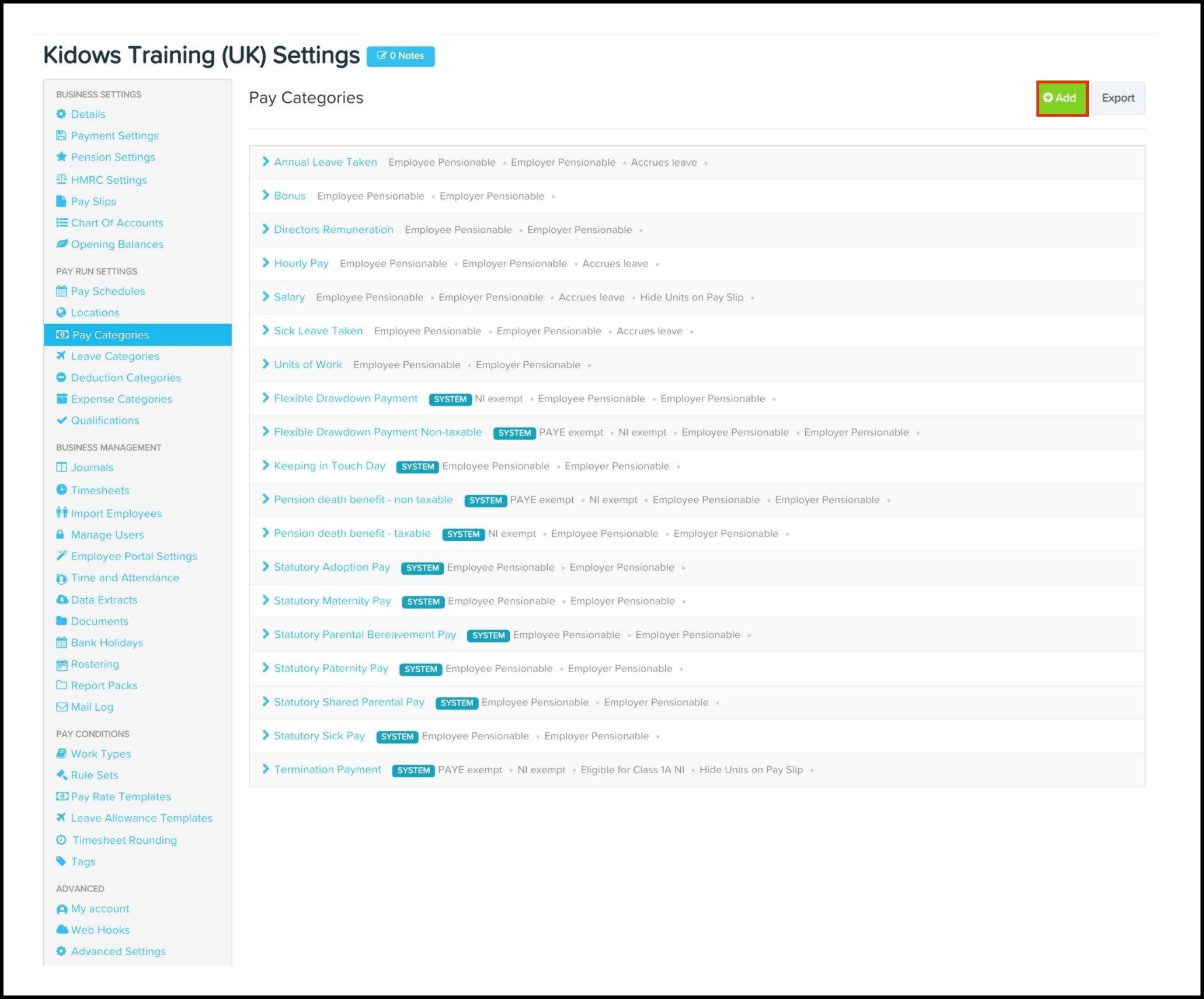 You can click the Add Linked Category button to link pay categories together. When linking a pay category to a base pay category, you only need to specify the base rate for the employee and it will automatically calculate the rate for the linked pay categories.