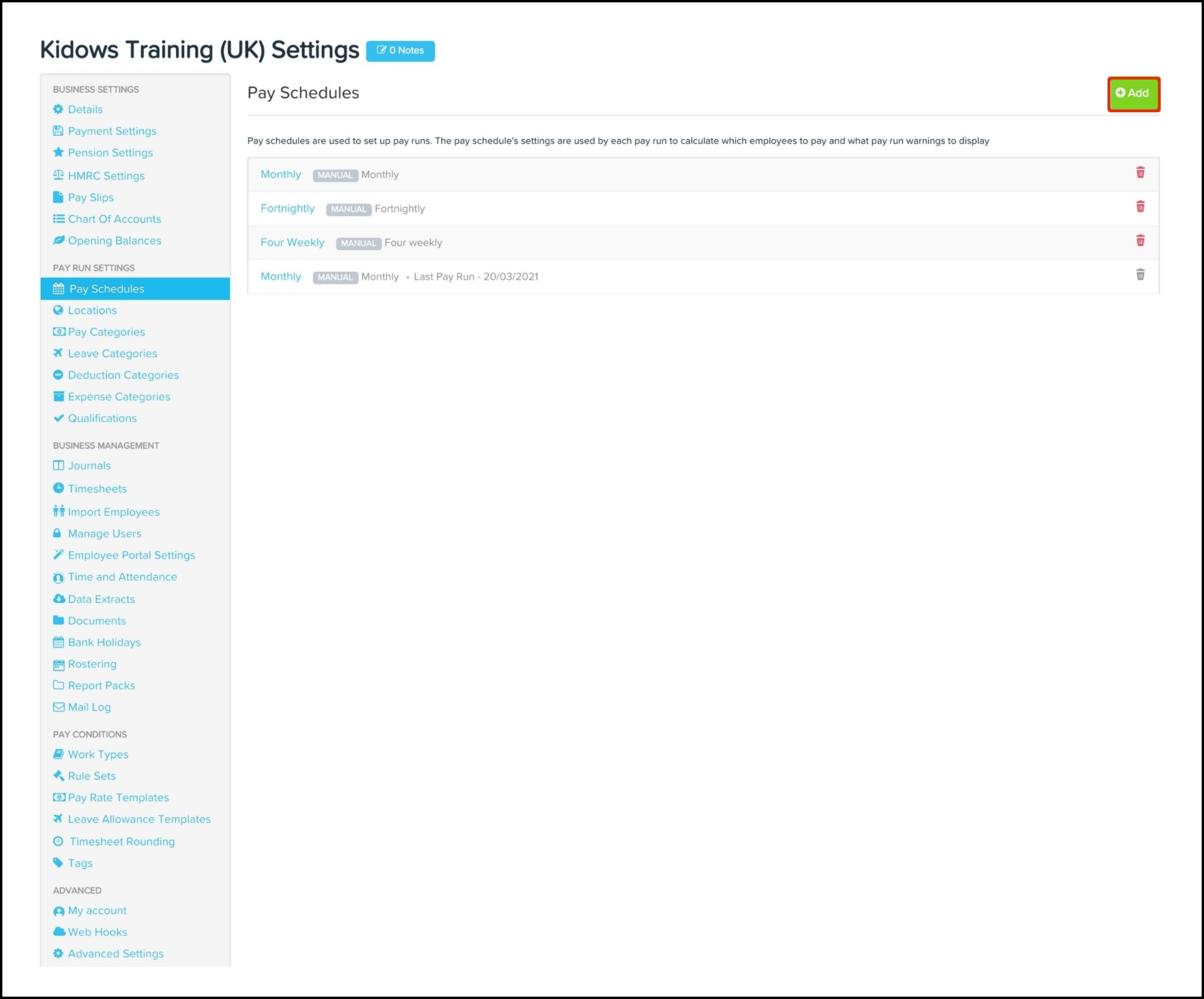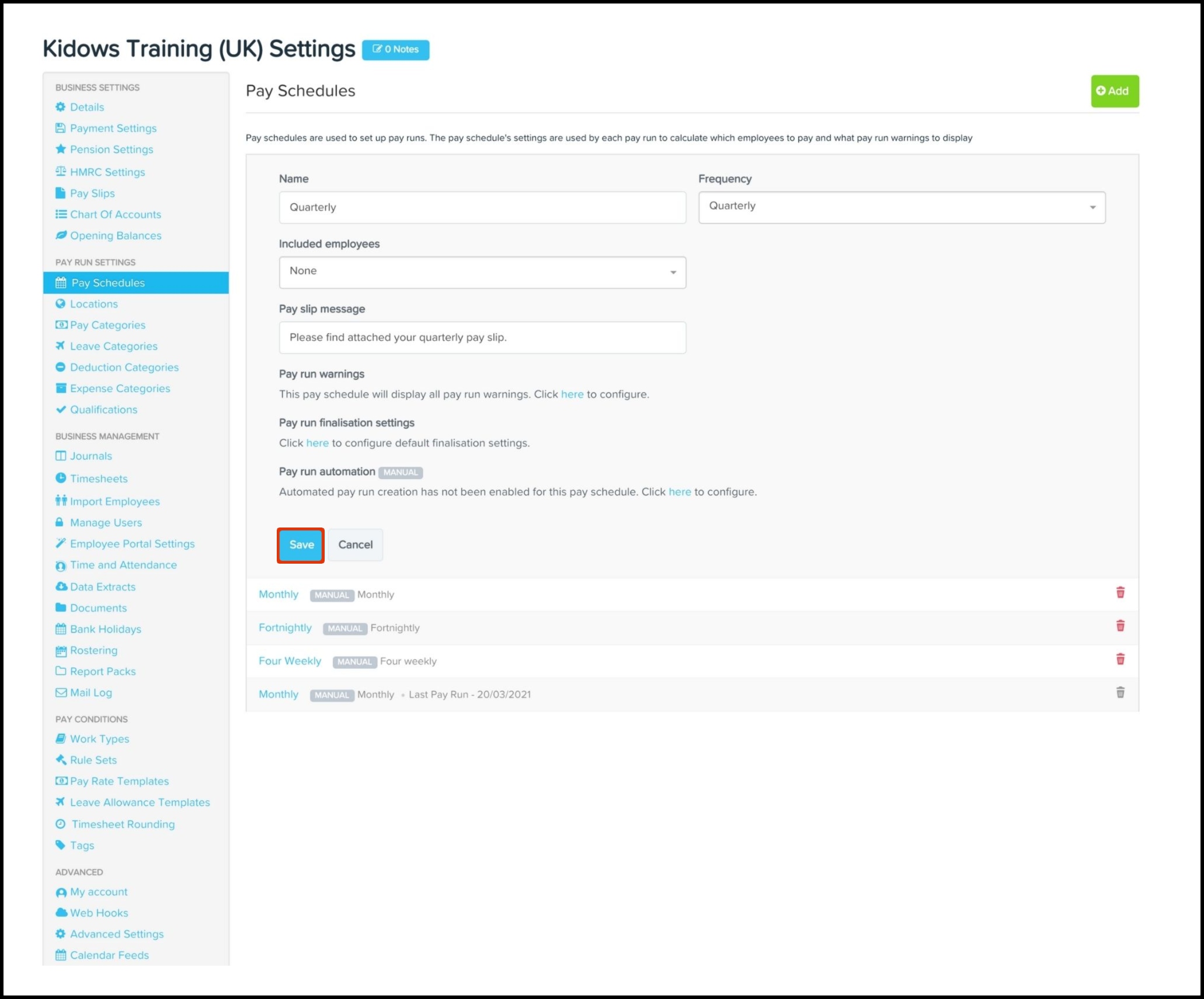 The Pay Schedule section will now show an Updated button. This means the HR platform has successfully imported your pay schedules from the payroll platform.