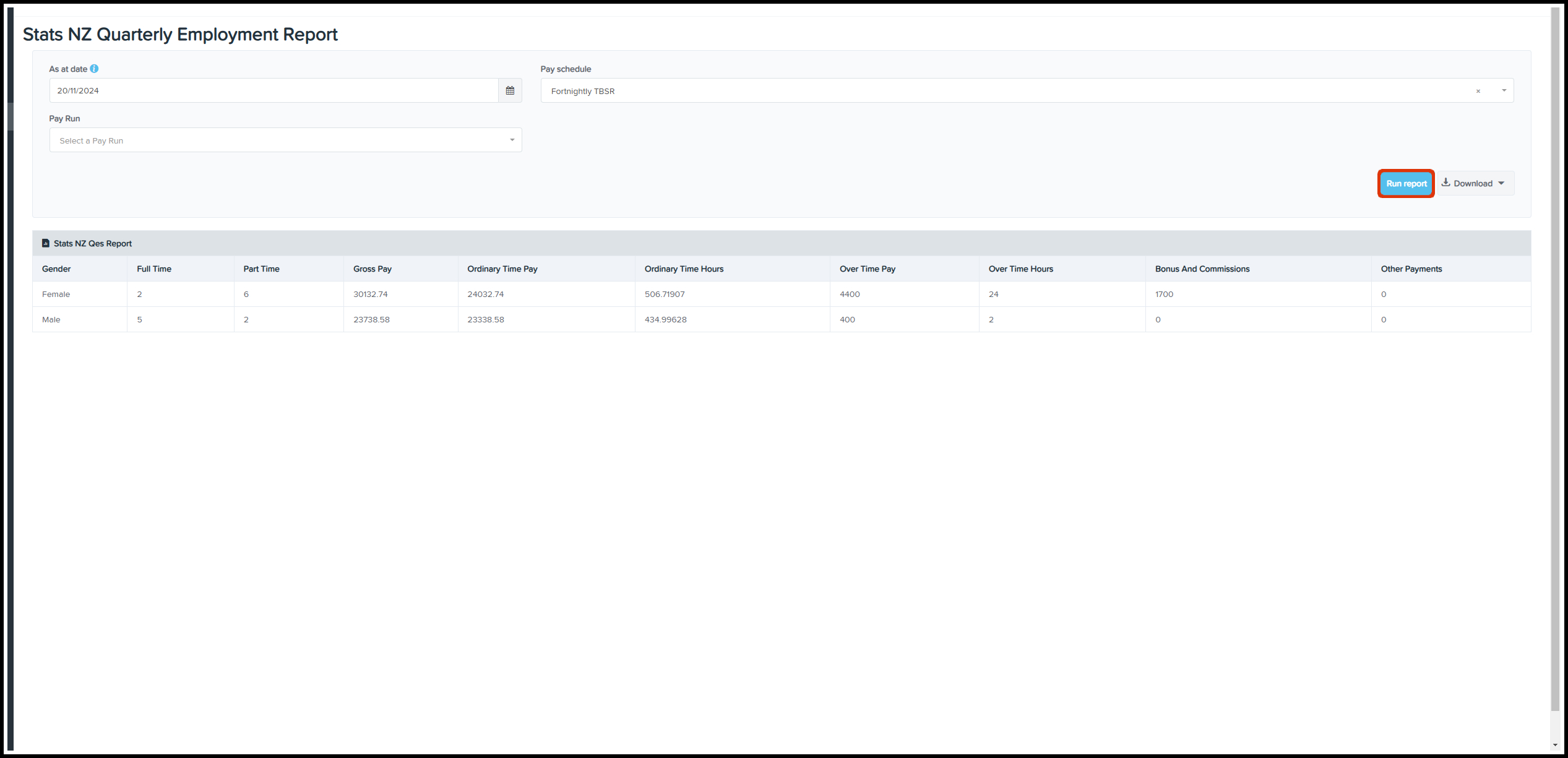 According to Stats NZ’s requirement, the pay run ending on or immediately before the specified As at date must be reported on.